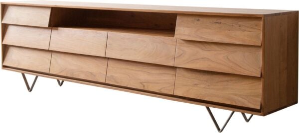 Komoda Manjula 145 cm mango hnedá 4 dvierka podstava v tvare V kov čierna