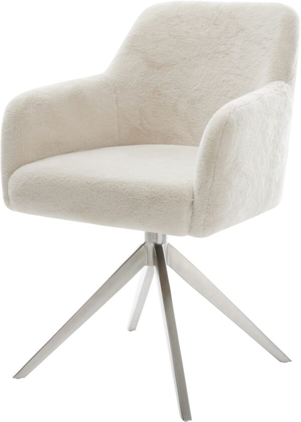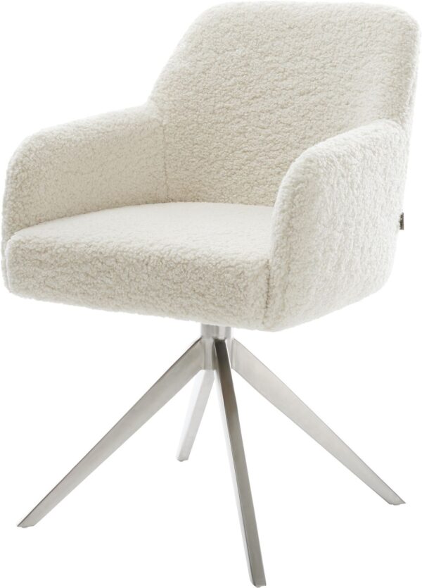 Jedálenská stolička Yago-Flex s opierkami bouclé mäkký béžová krížová podstava široká nerezová oceľ 360° otočný hojdacia funkcia vrecková pružina