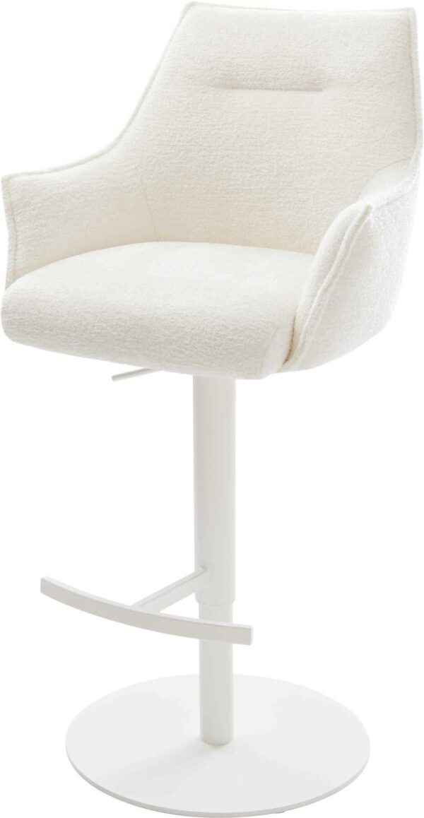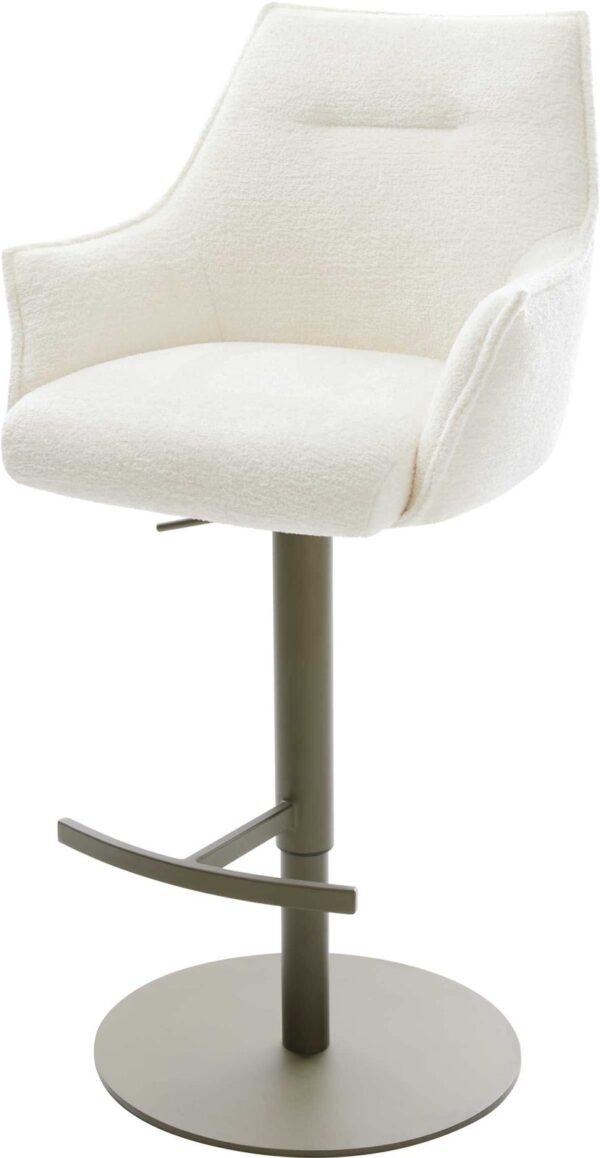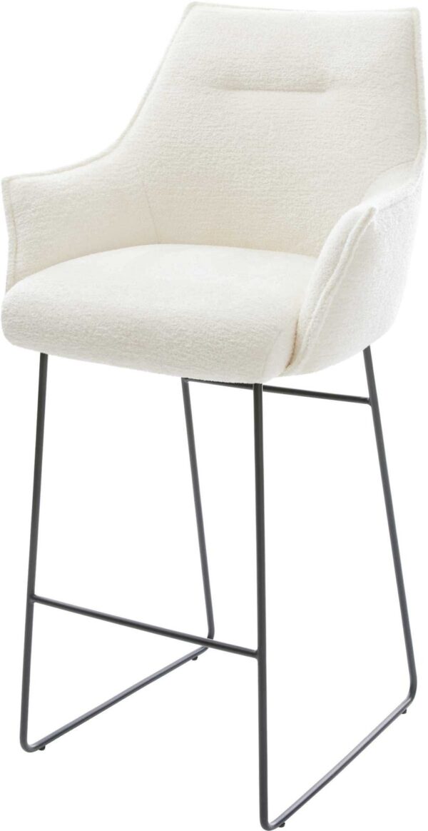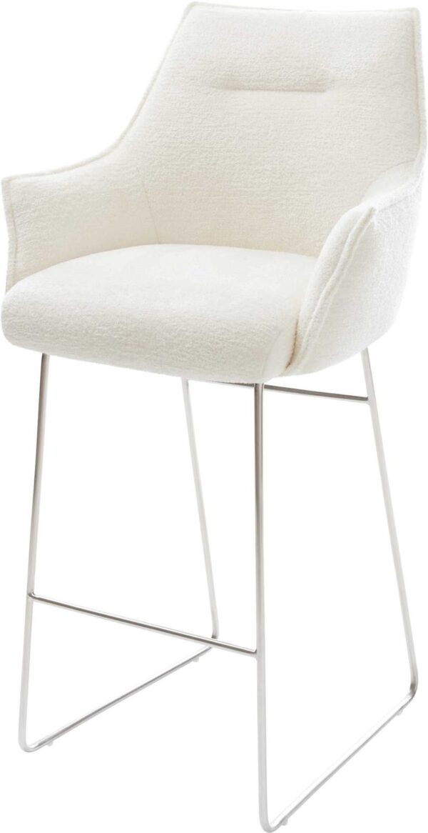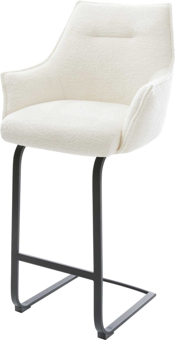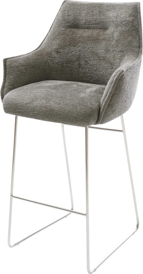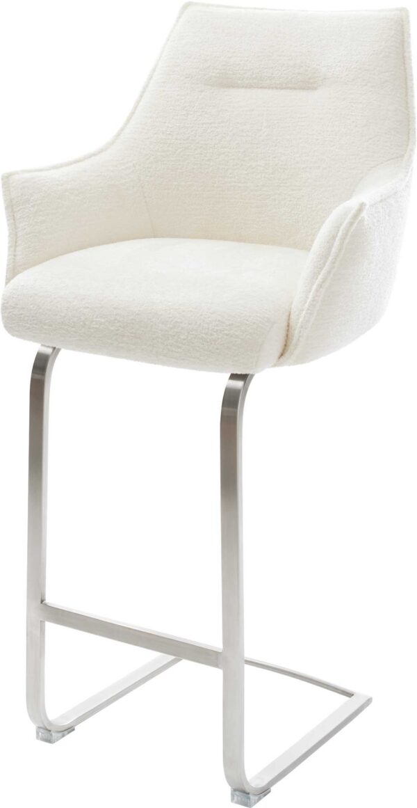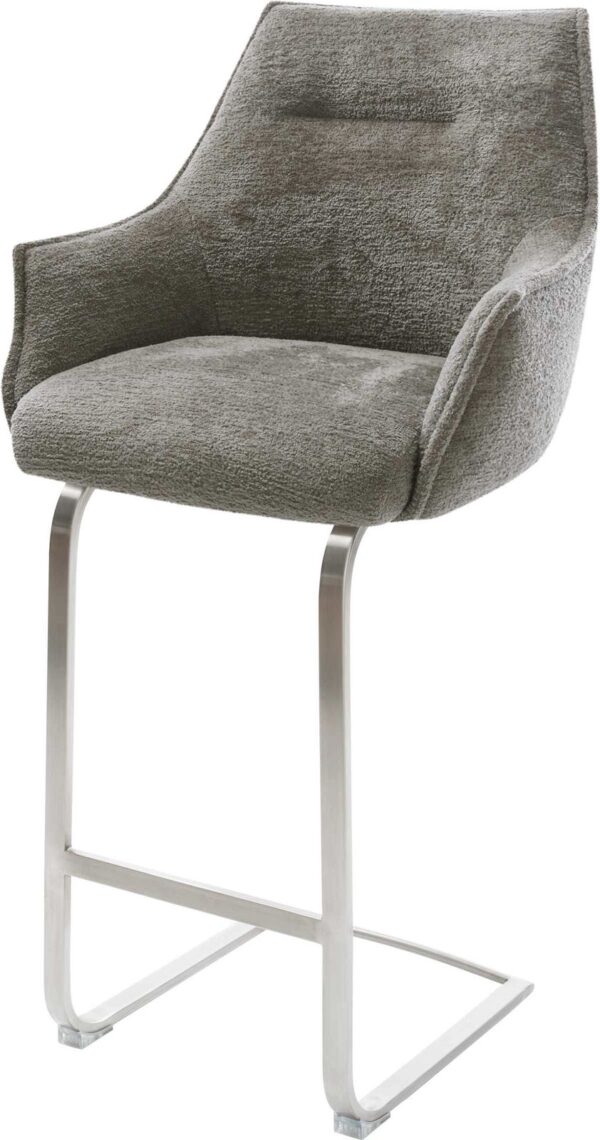 Barová stolička Alja-Flex bouclé mäkký tmavobéžová konzolová podstava plochá nerezová oceľ strieborná vrecková pružina