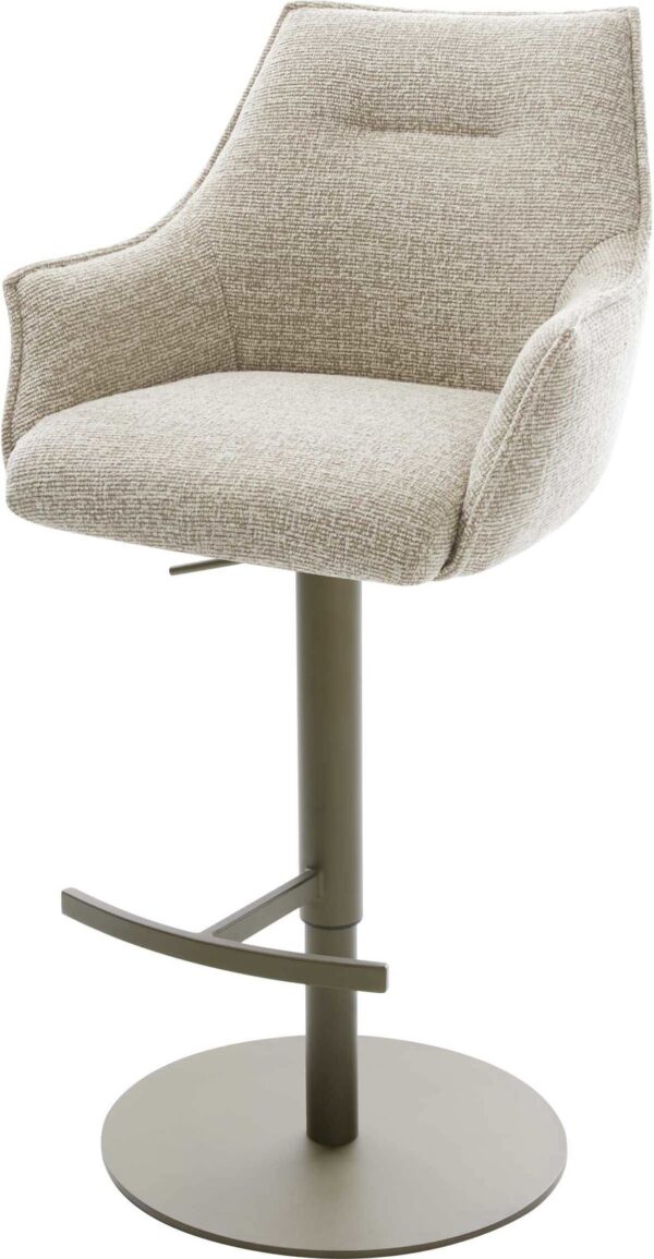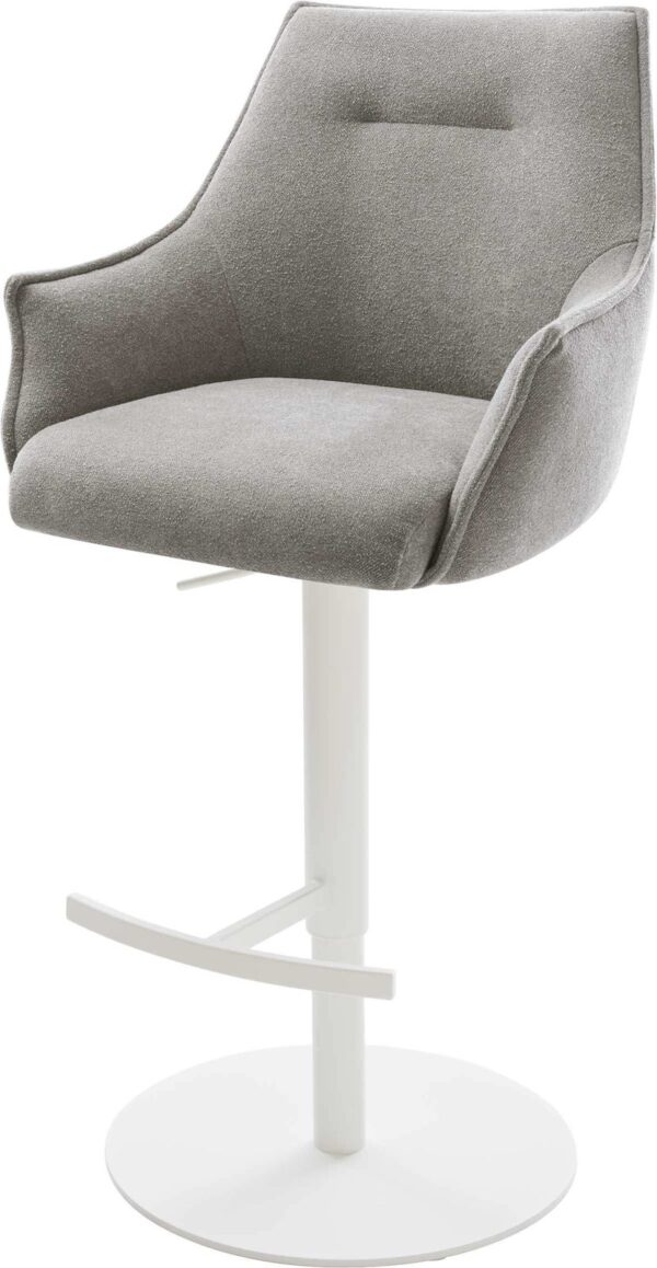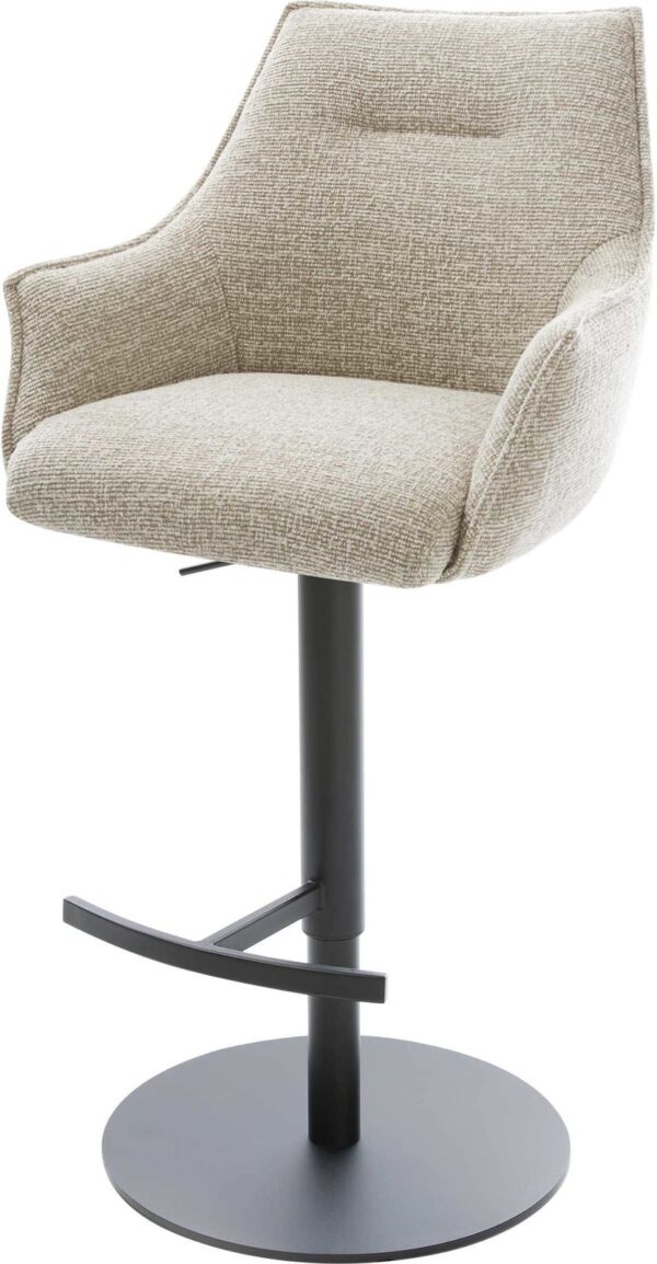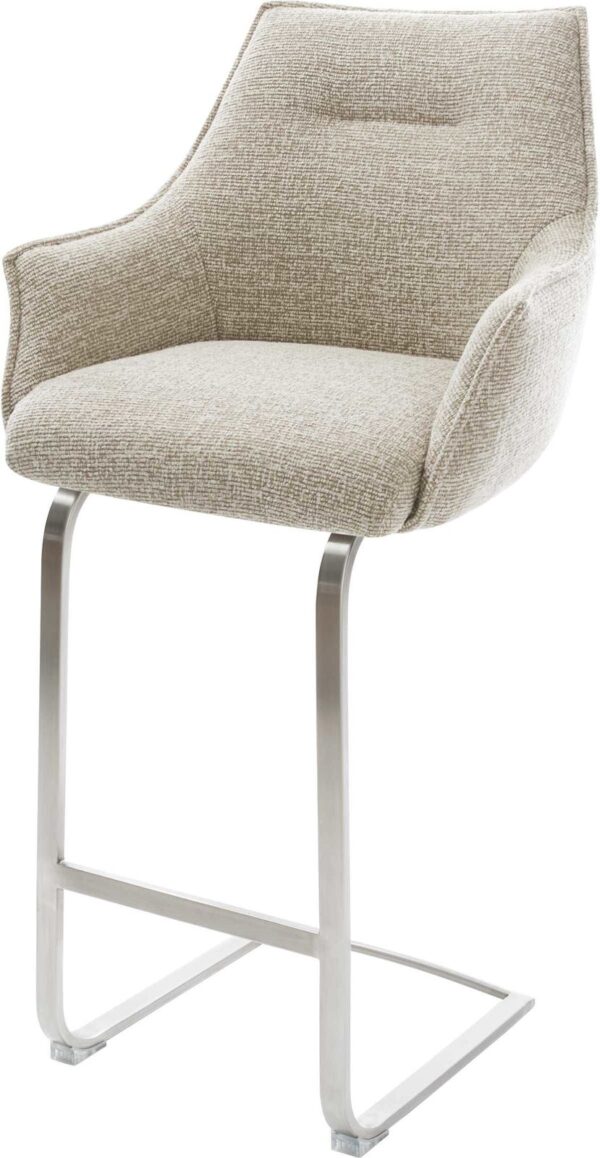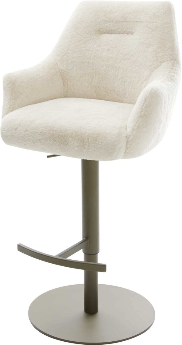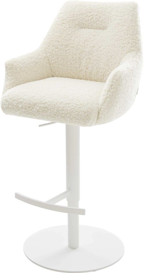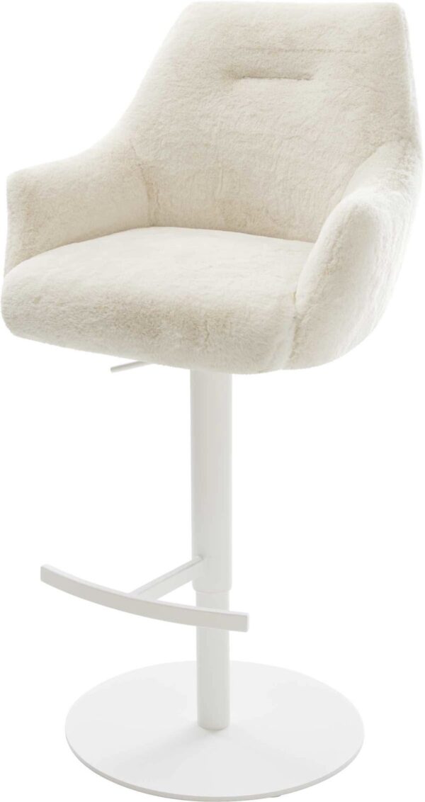 Barová stolička Alja-Flex tkanina mäkký béžová otočná podstava výškovo nastaviteľná kov biela vrecková pružina
