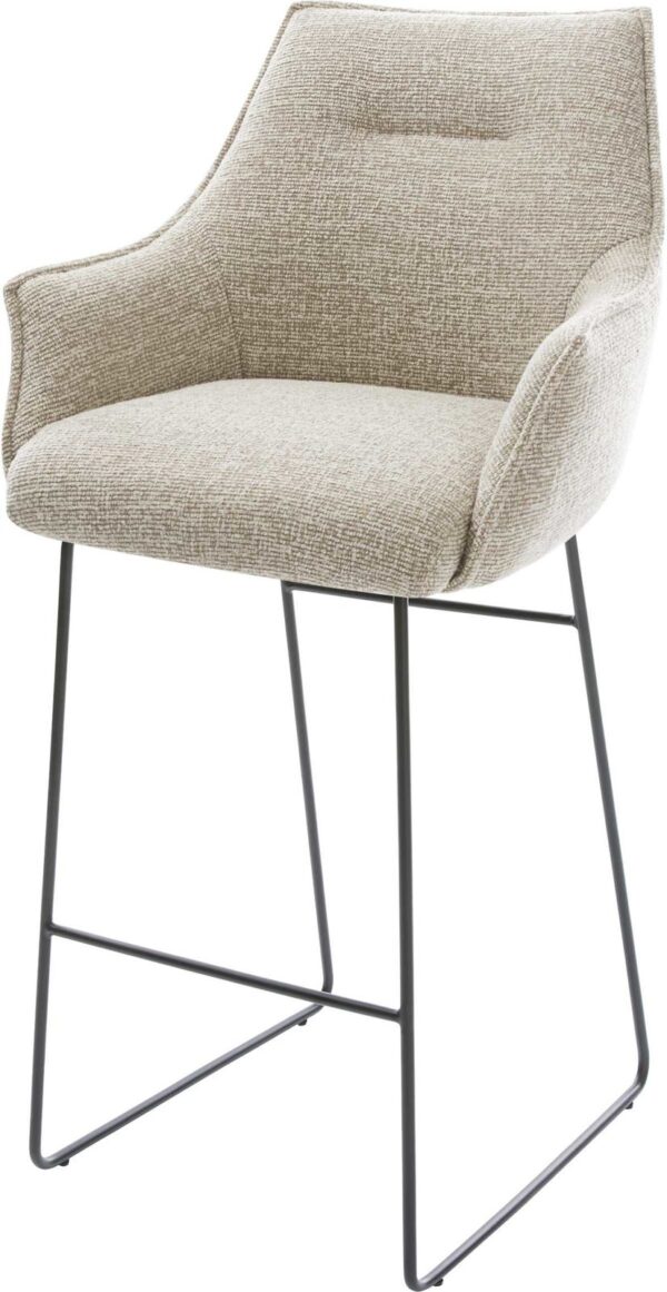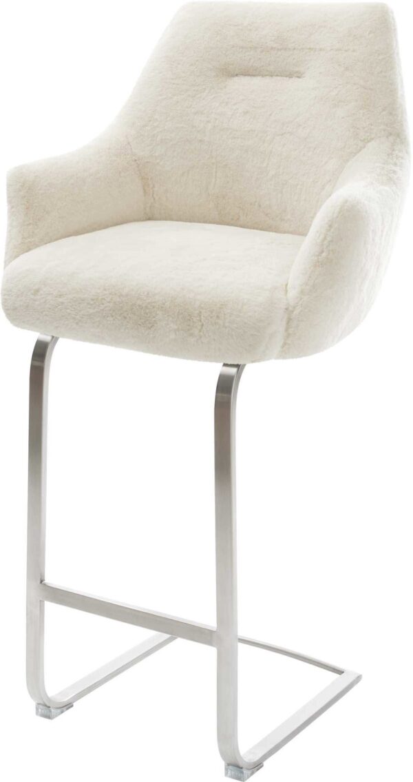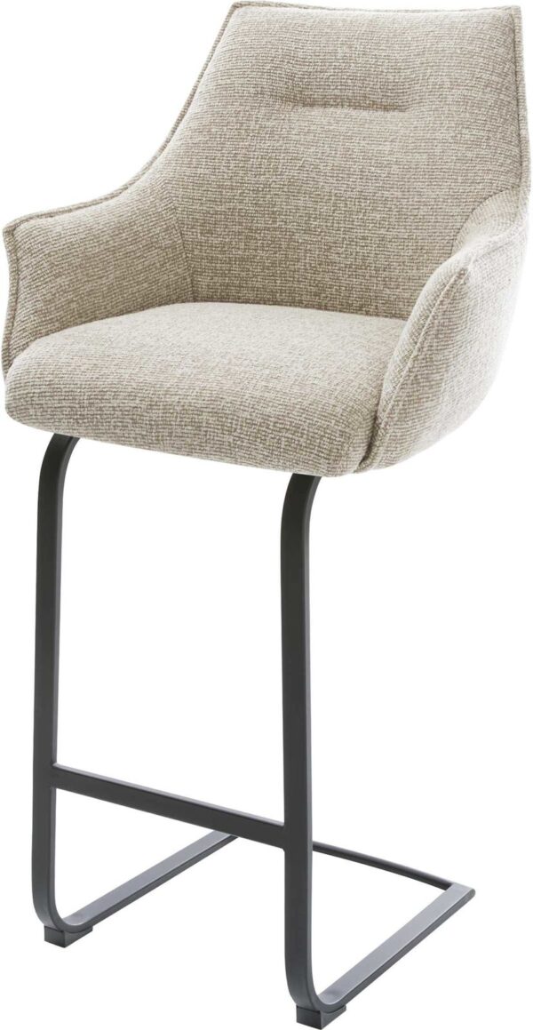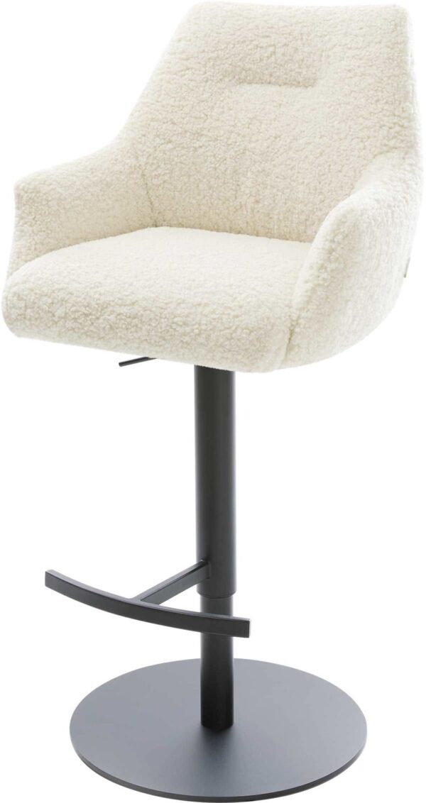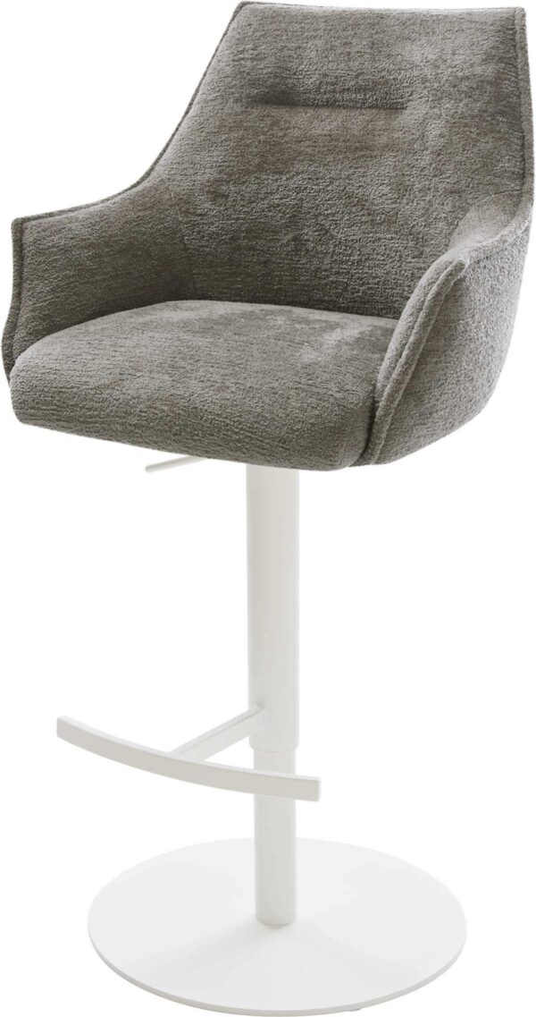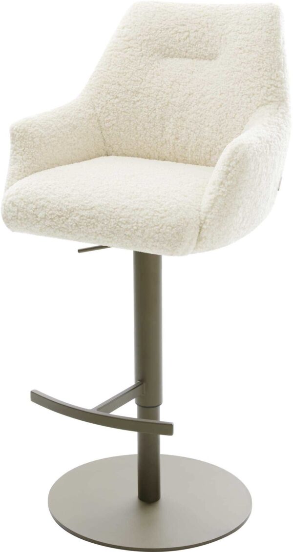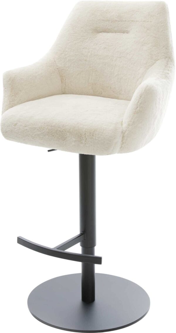 Barová stolička Alja-Flex tkanina mäkký béžová otočná podstava výškovo nastaviteľná kov biela vrecková pružina