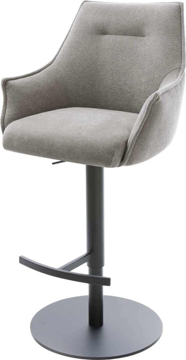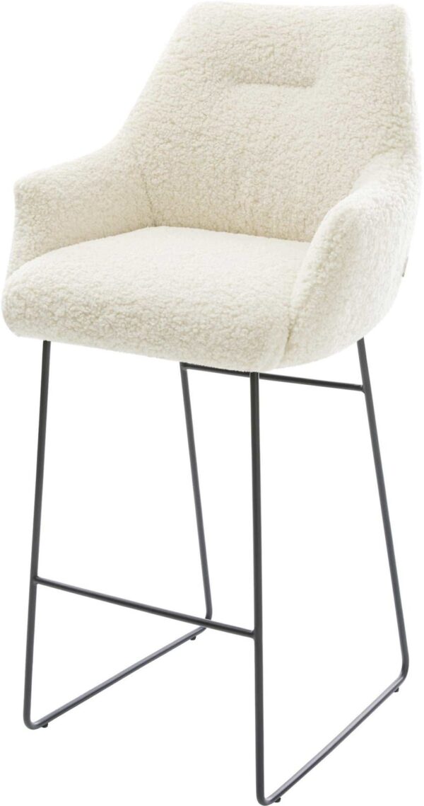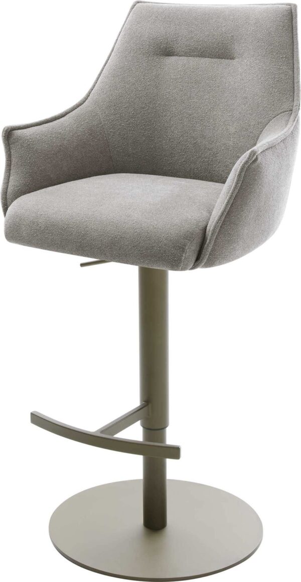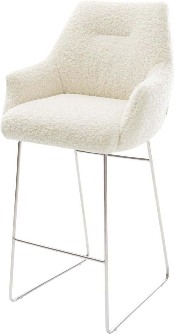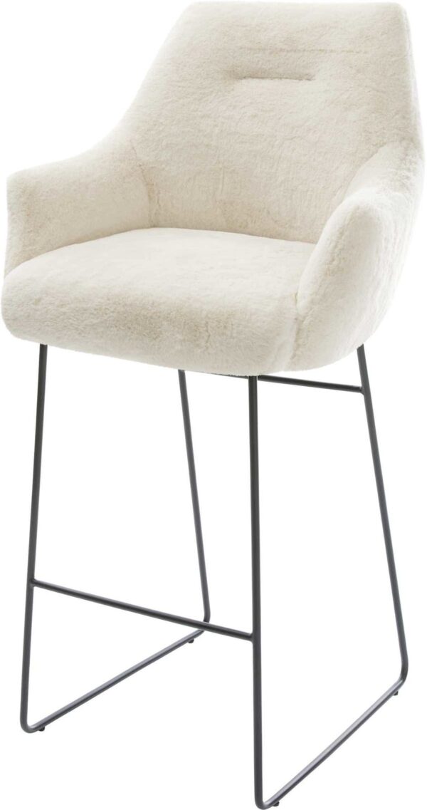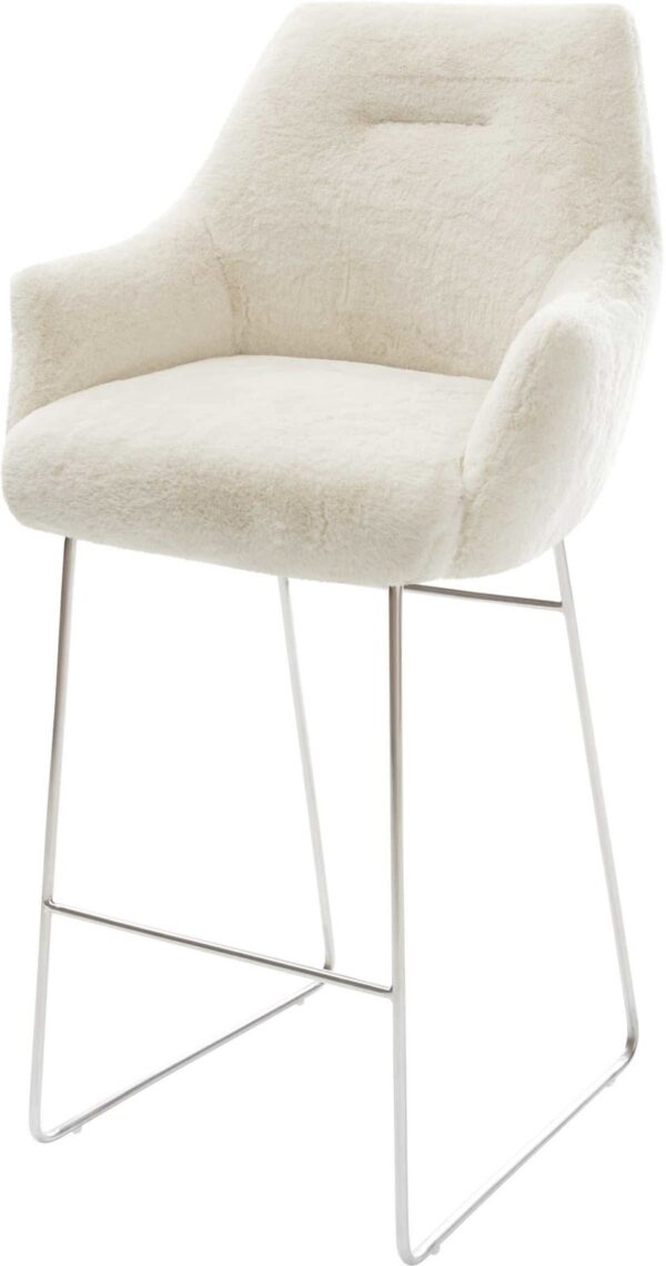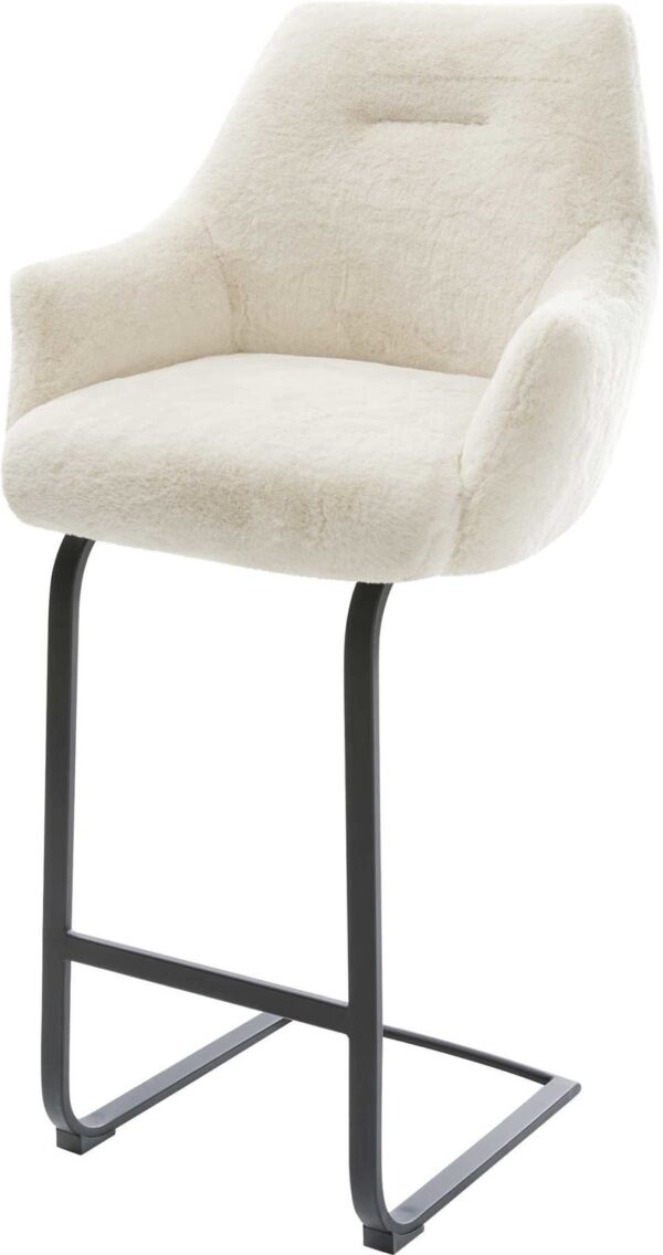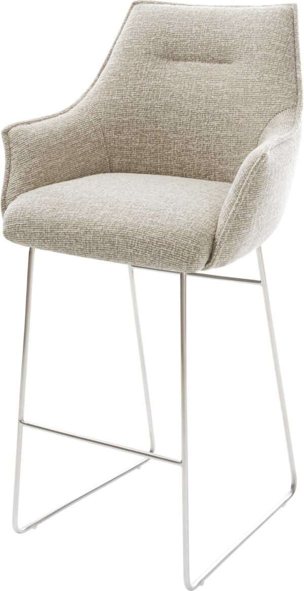 Barová stolička Alja-Flex tkanina mäkký béžová otočná podstava výškovo nastaviteľná kov biela vrecková pružina