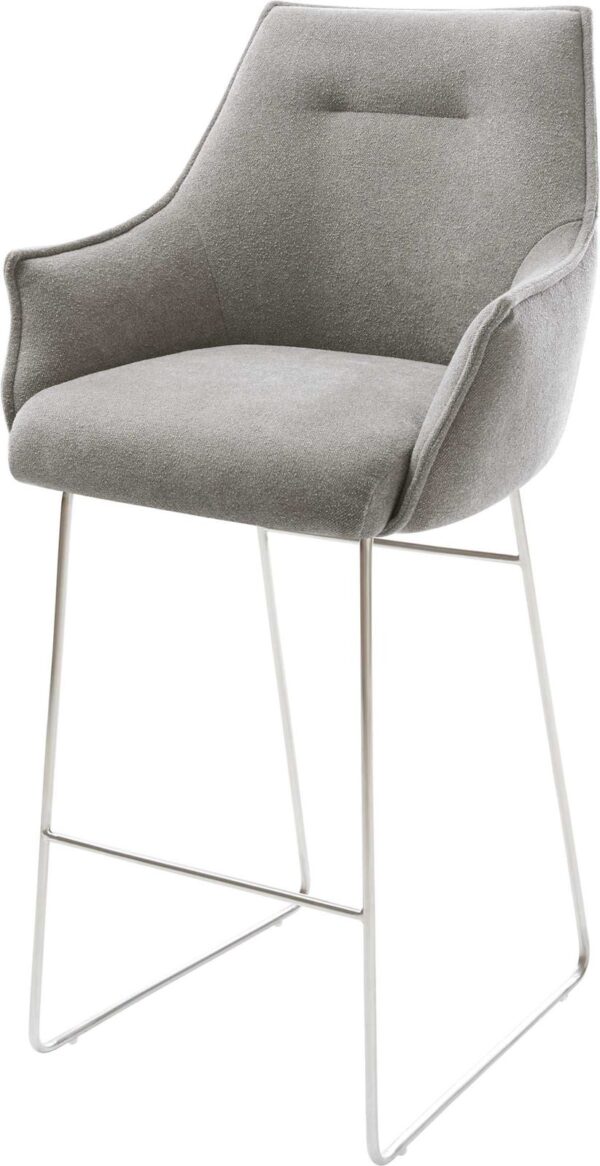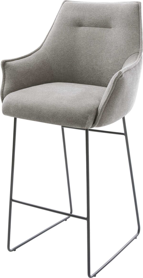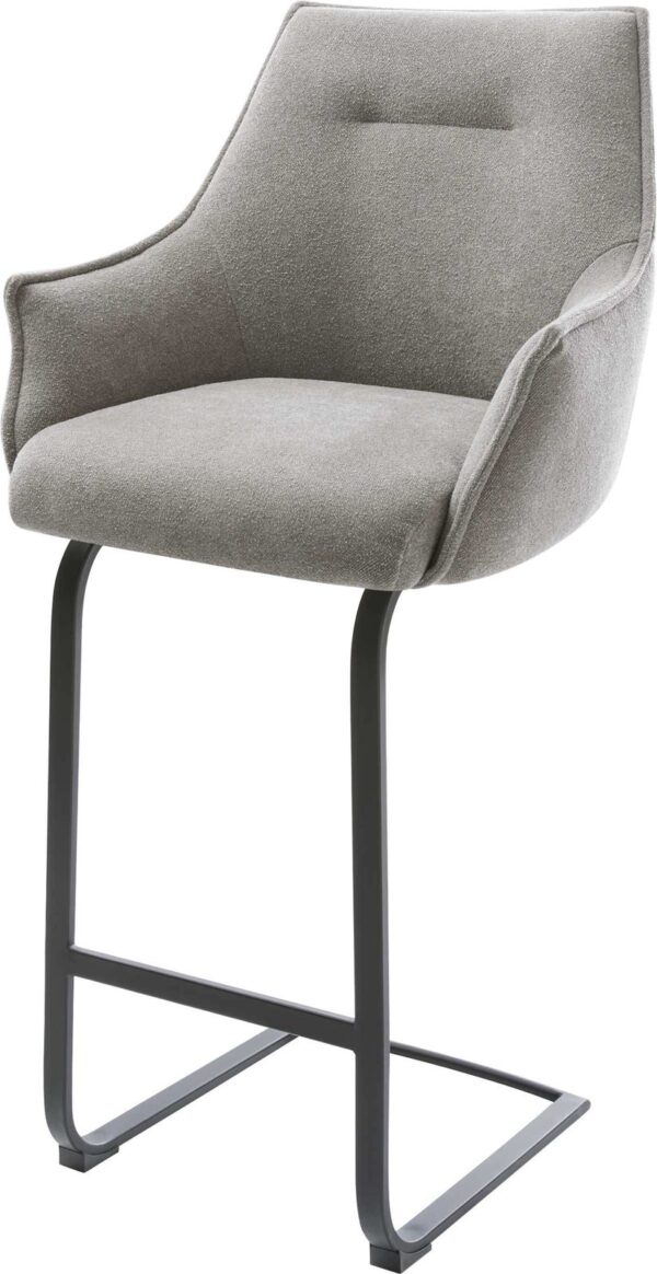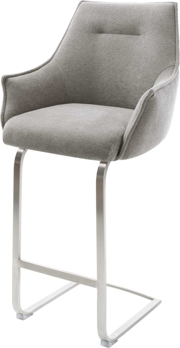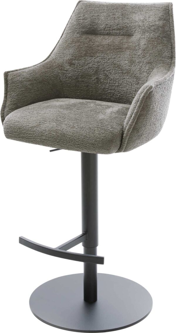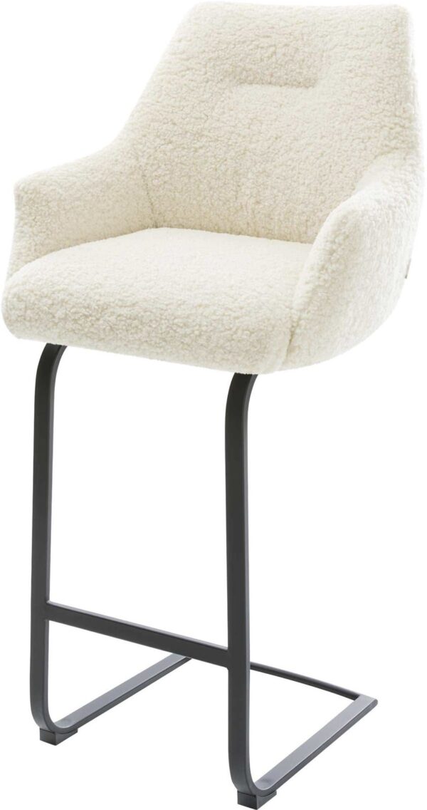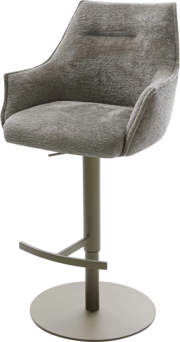 Barová stolička Alja-Flex tkanina mäkký béžová otočná podstava výškovo nastaviteľná kov biela vrecková pružina