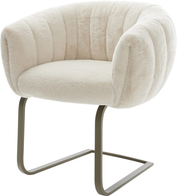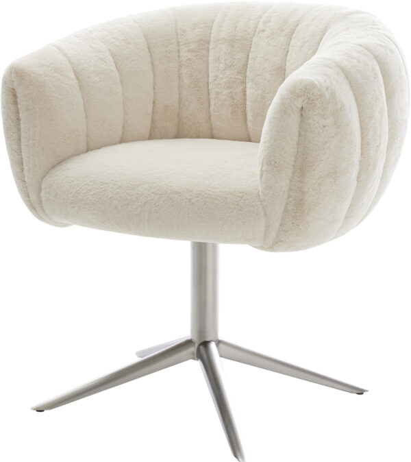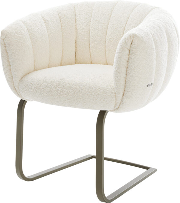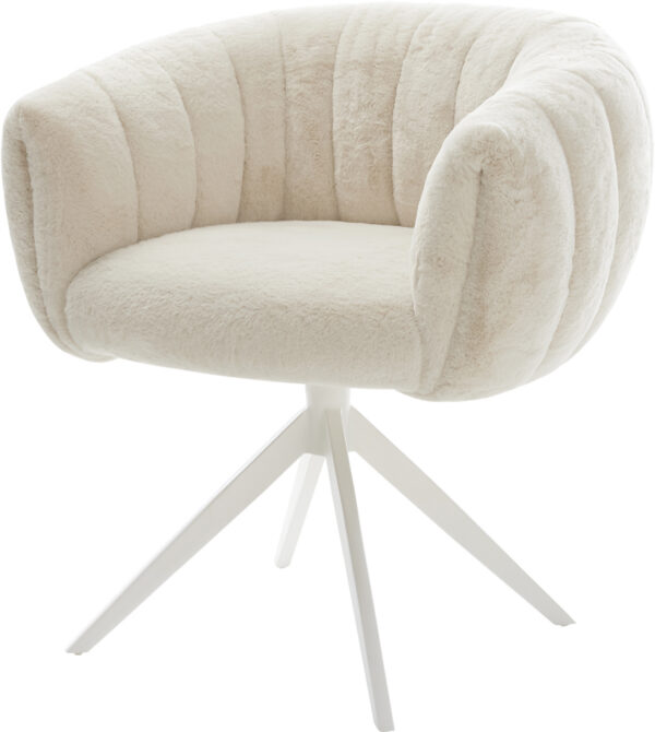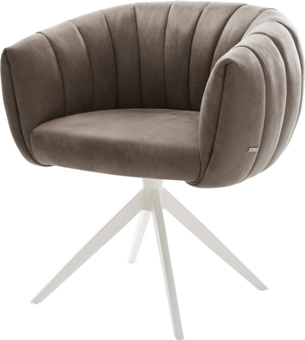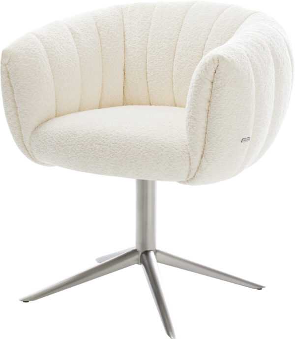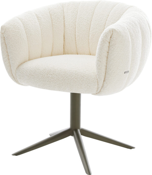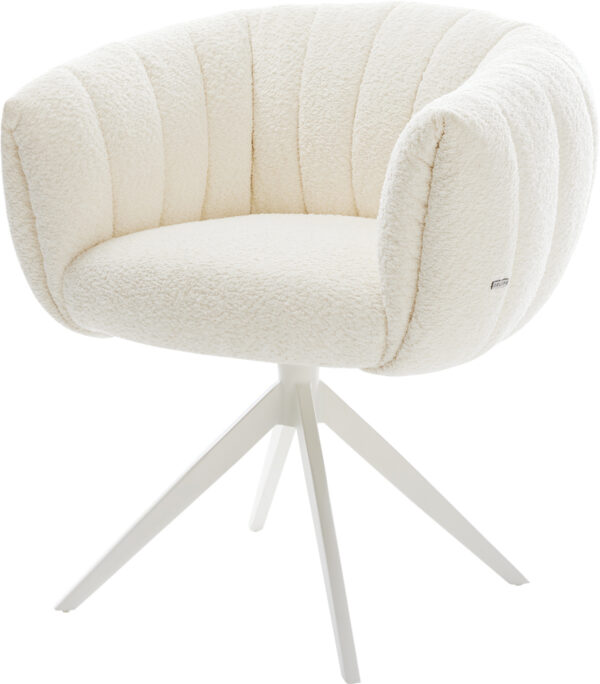 Jedálenská stolička Vinja-Flex bouclé mäkký tmavobéžová krížová podstava široká biela 360° otočná hojdacia funkcia