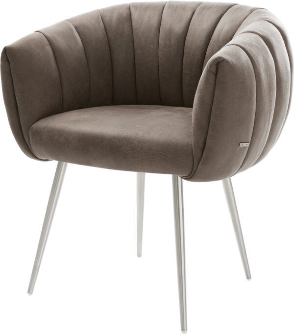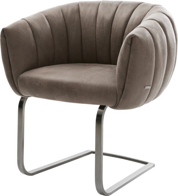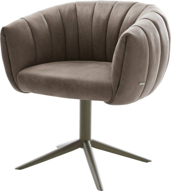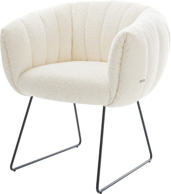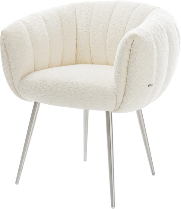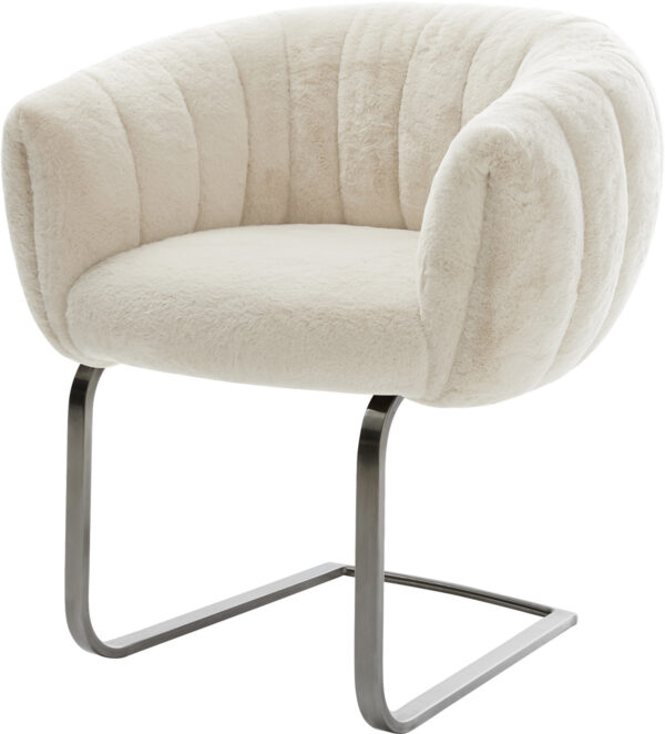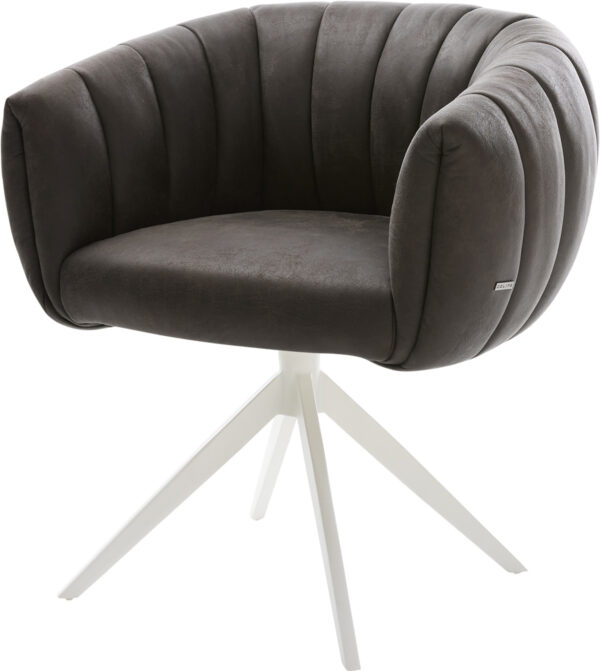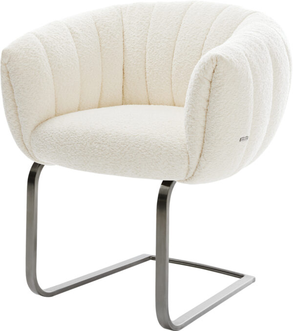 Jedálenská stolička Vinja-Flex bouclé mäkký tmavobéžová krížová podstava široká biela 360° otočná hojdacia funkcia