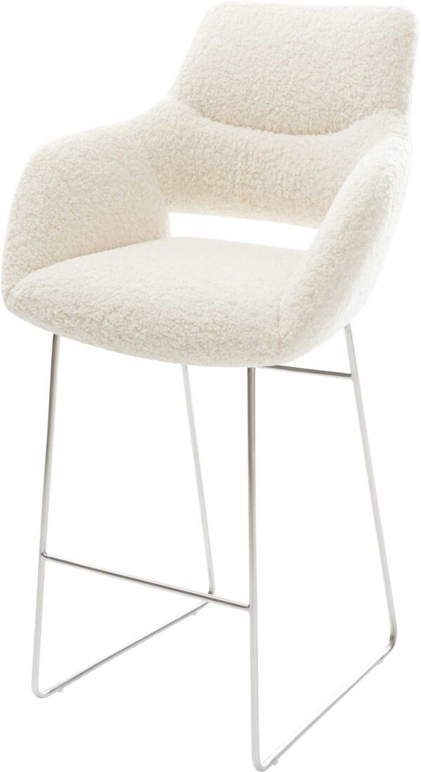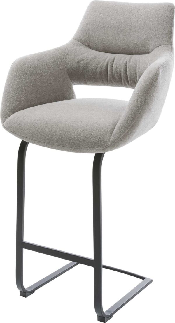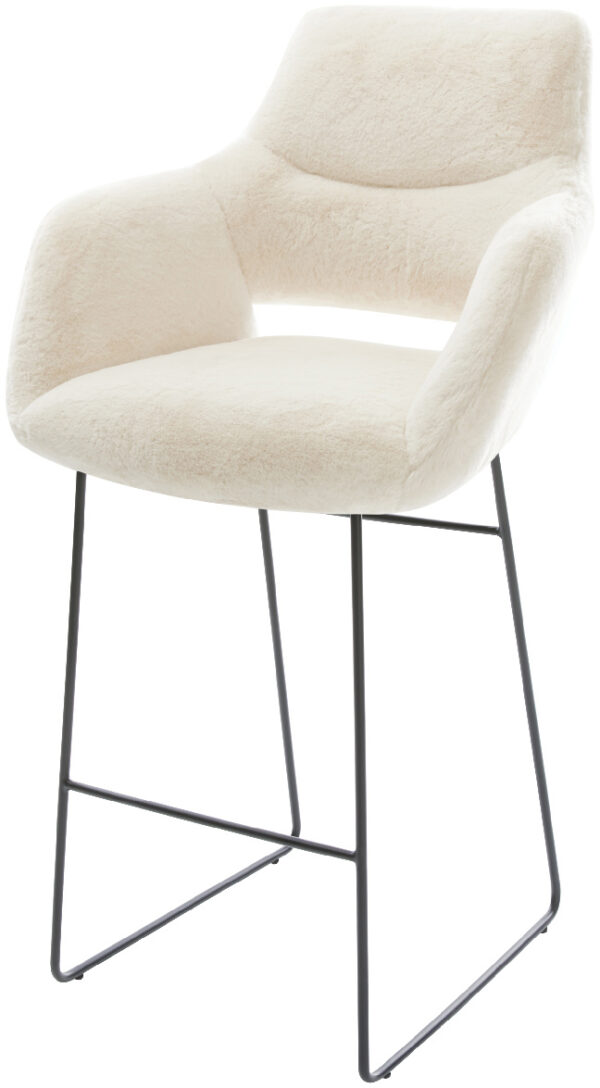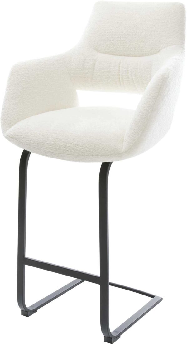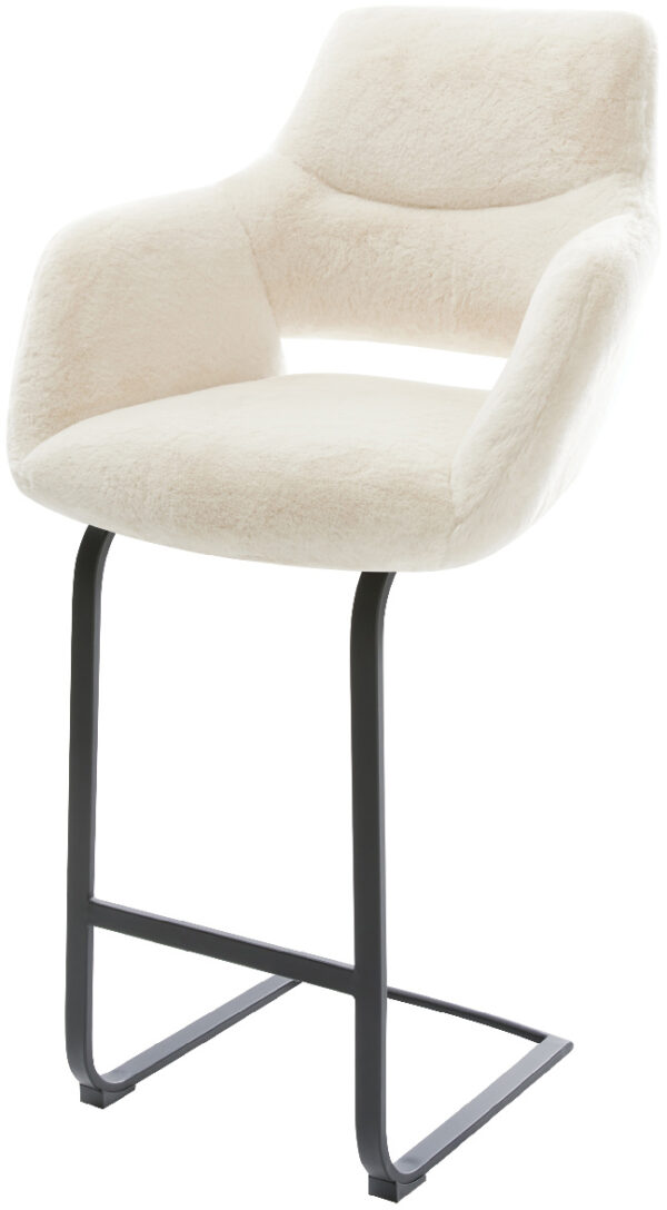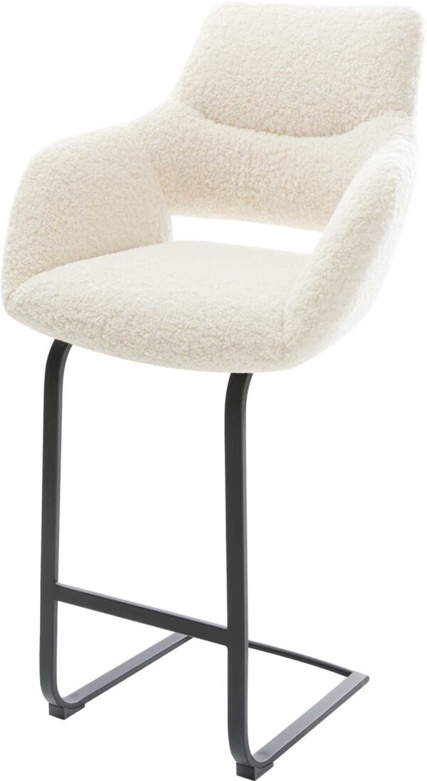 Barová stolička Yago-Flex teddy látka béžová konzolová podstava plochý kov čierna vrecková pružina
