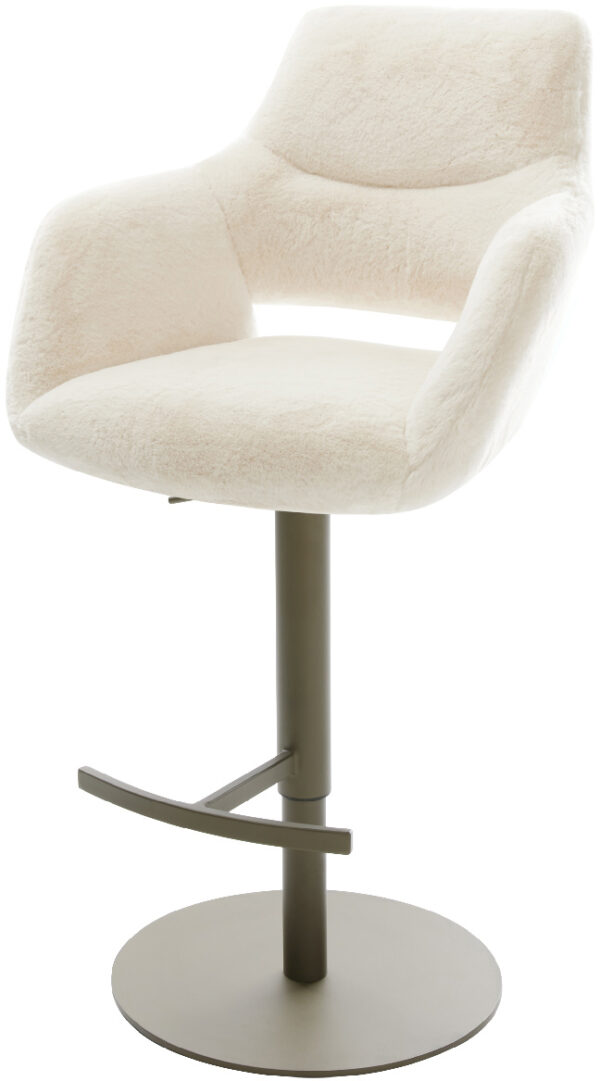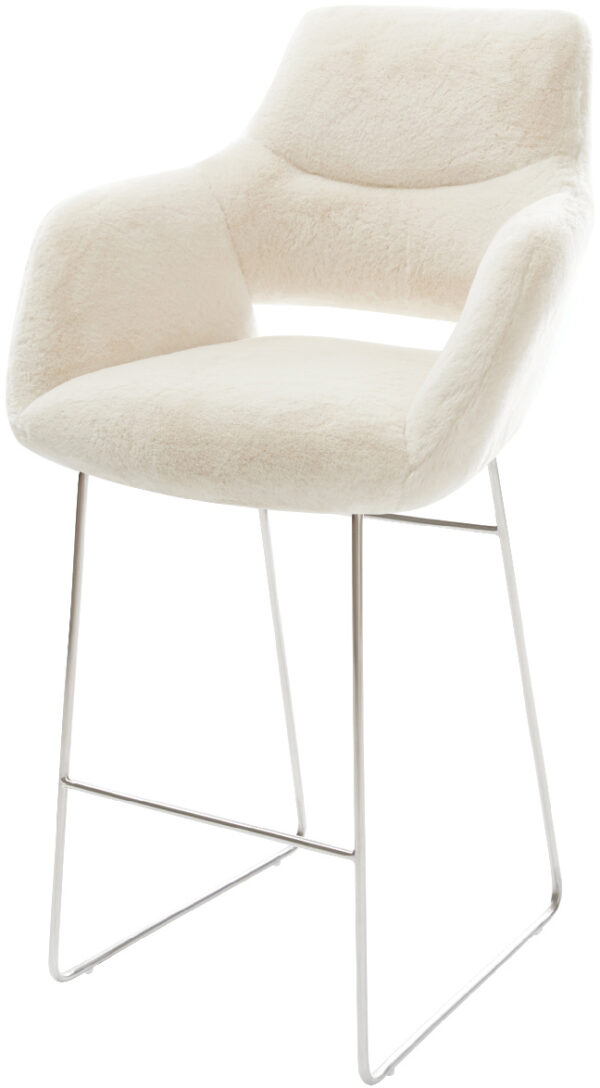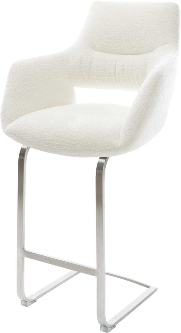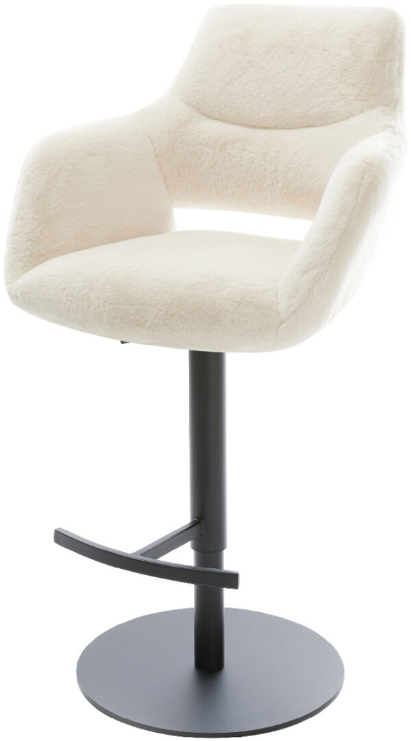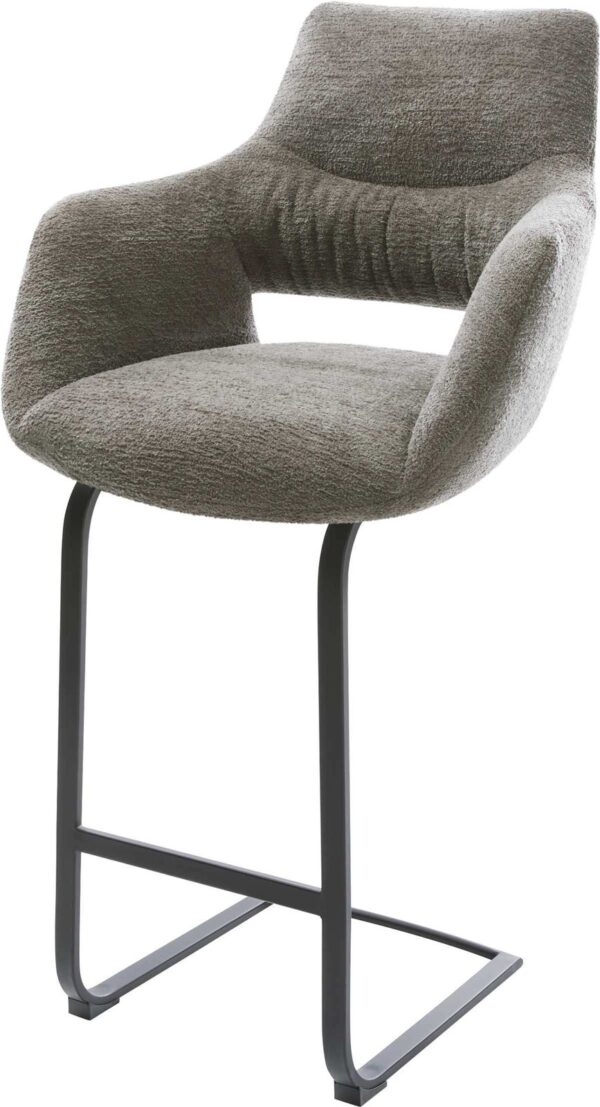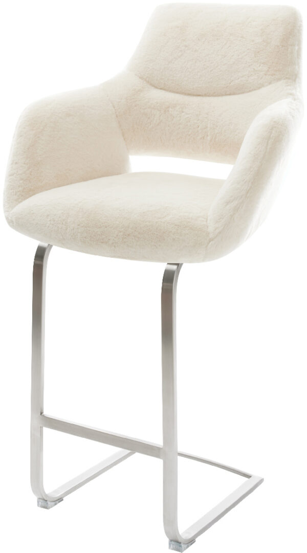Barová stolička Yago-Flex teddy látka béžová konzolová podstava plochý kov čierna vrecková pružina