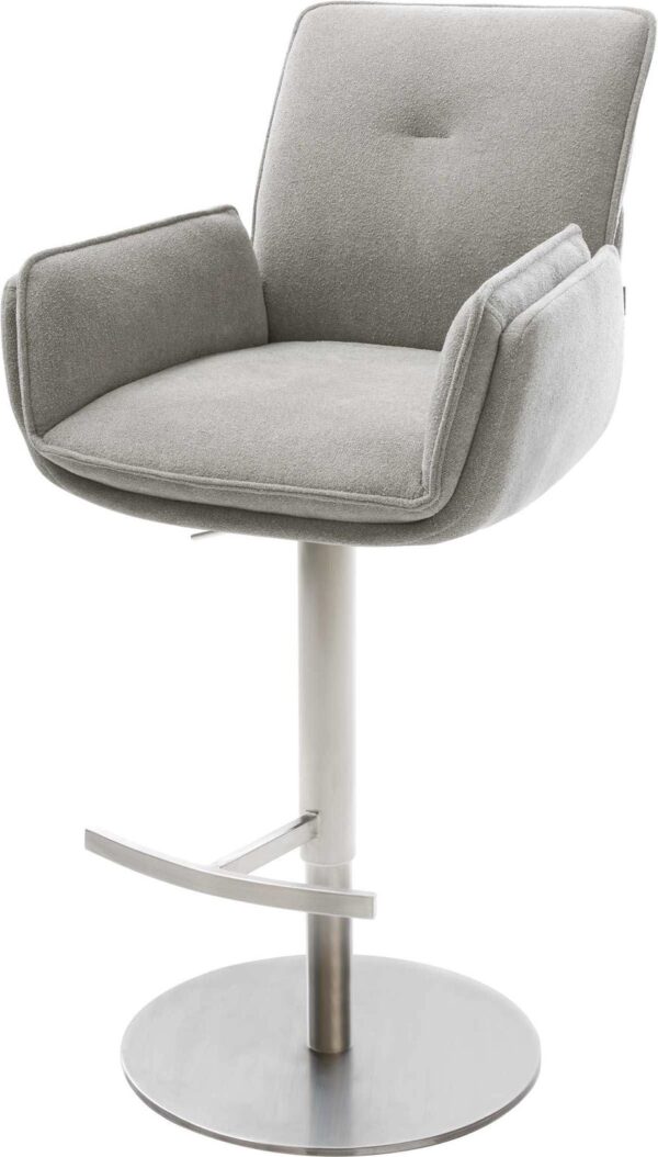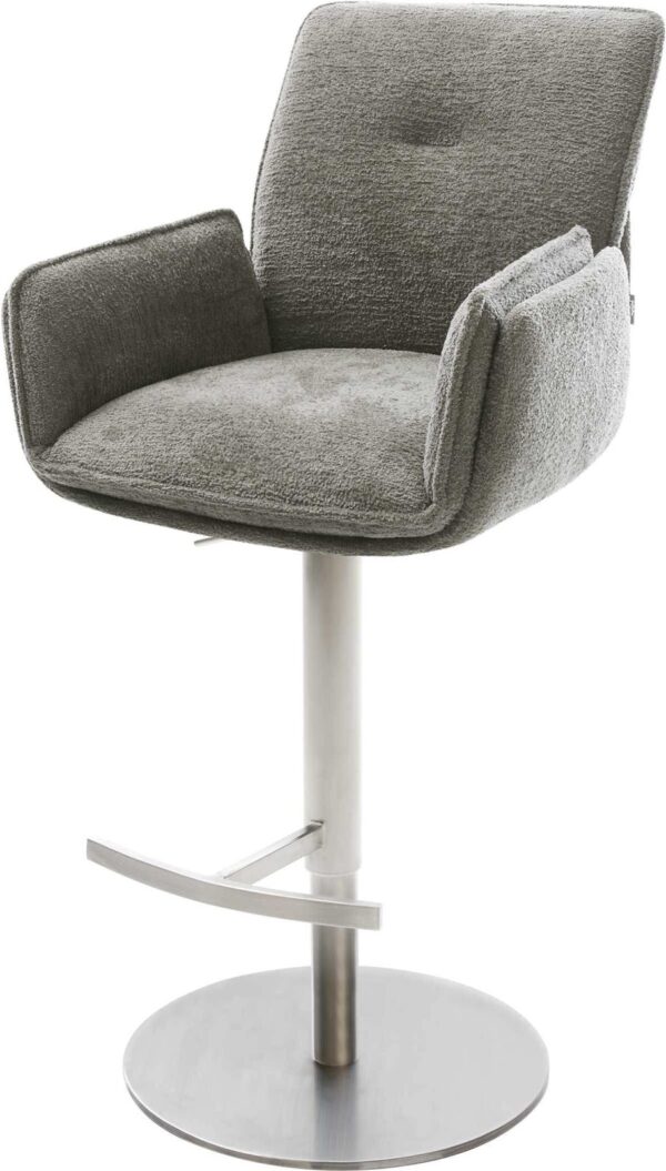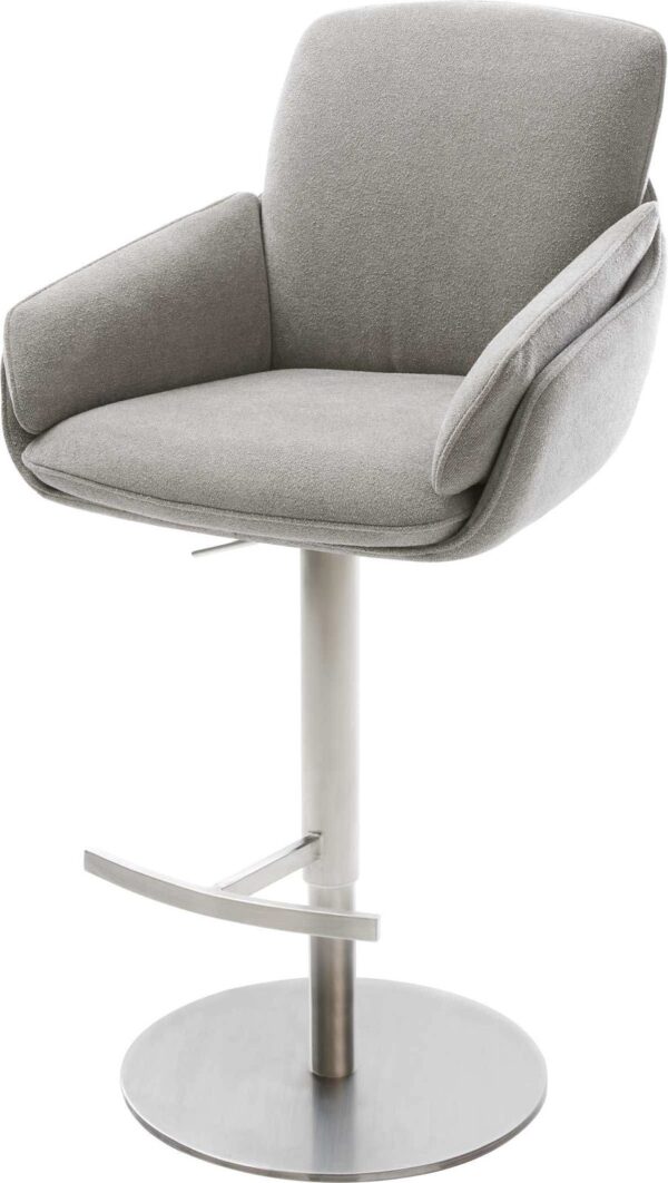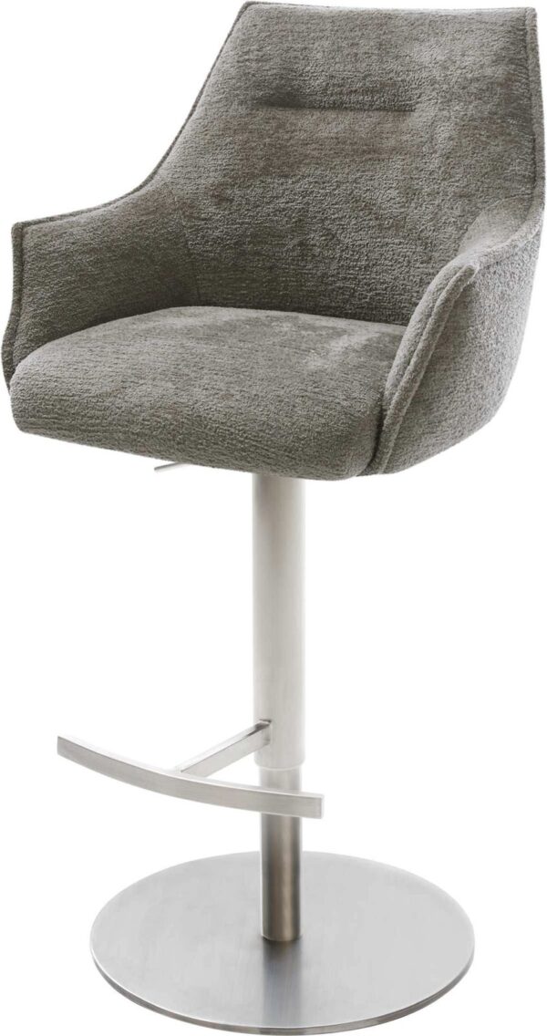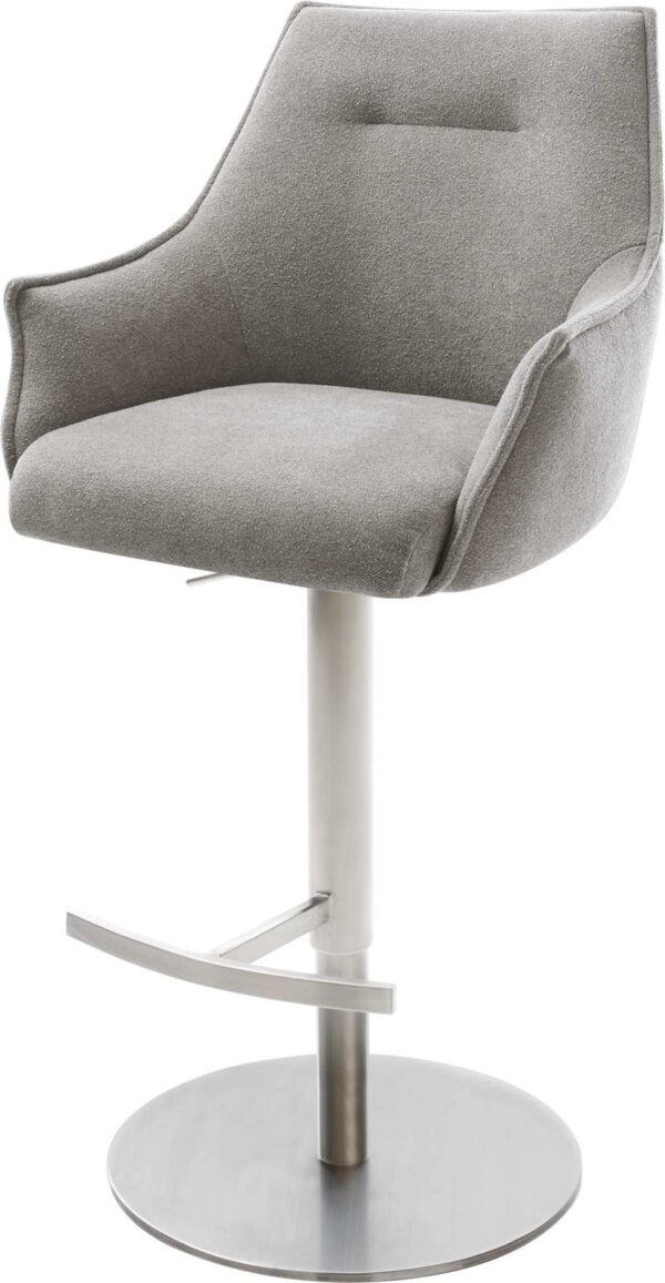 Barová stolička Nela-Flex texturovaná látka mäkký otočná podstava výškovo nastaviteľná nerezová oceľ strieborno-šedá