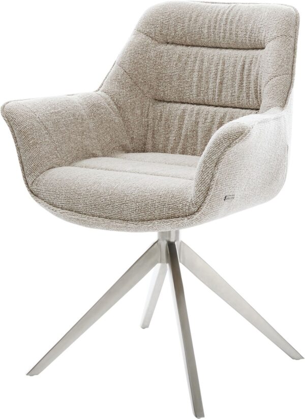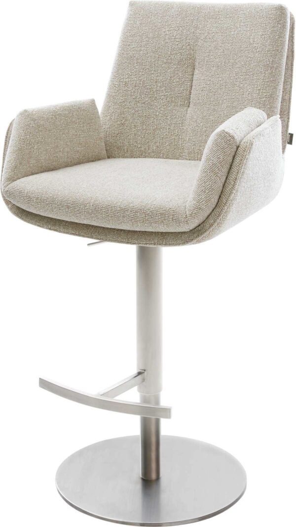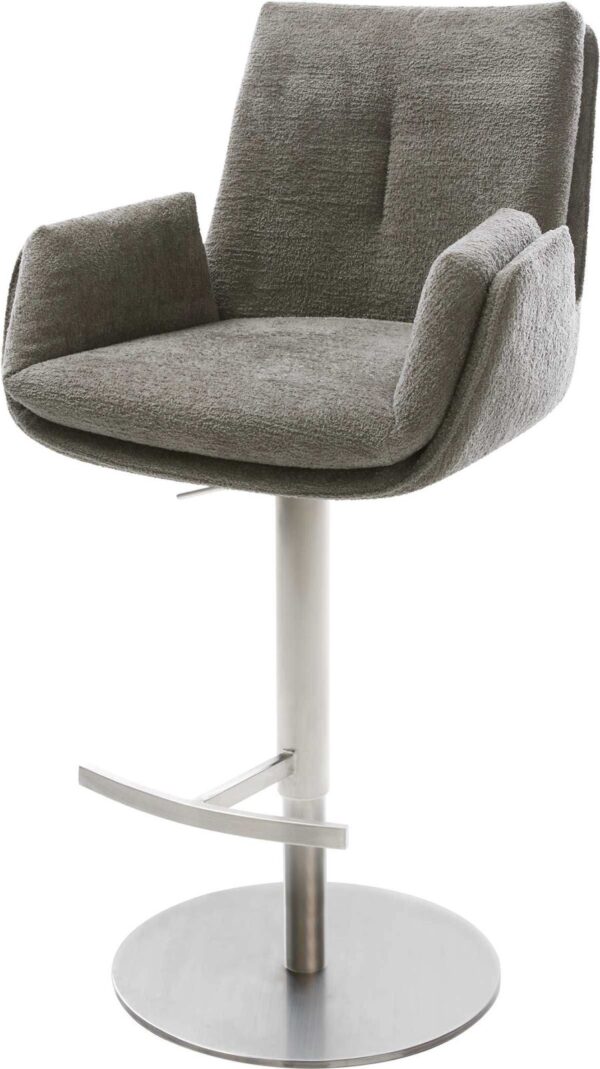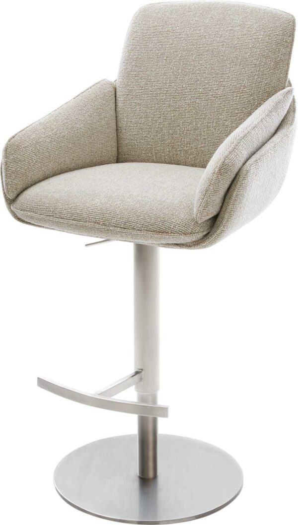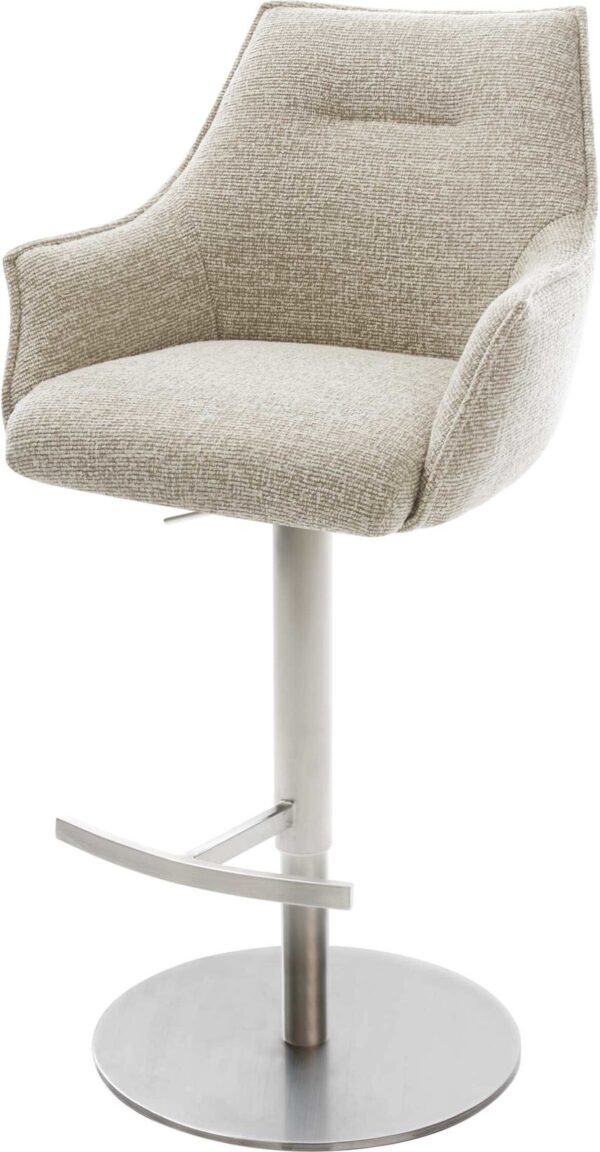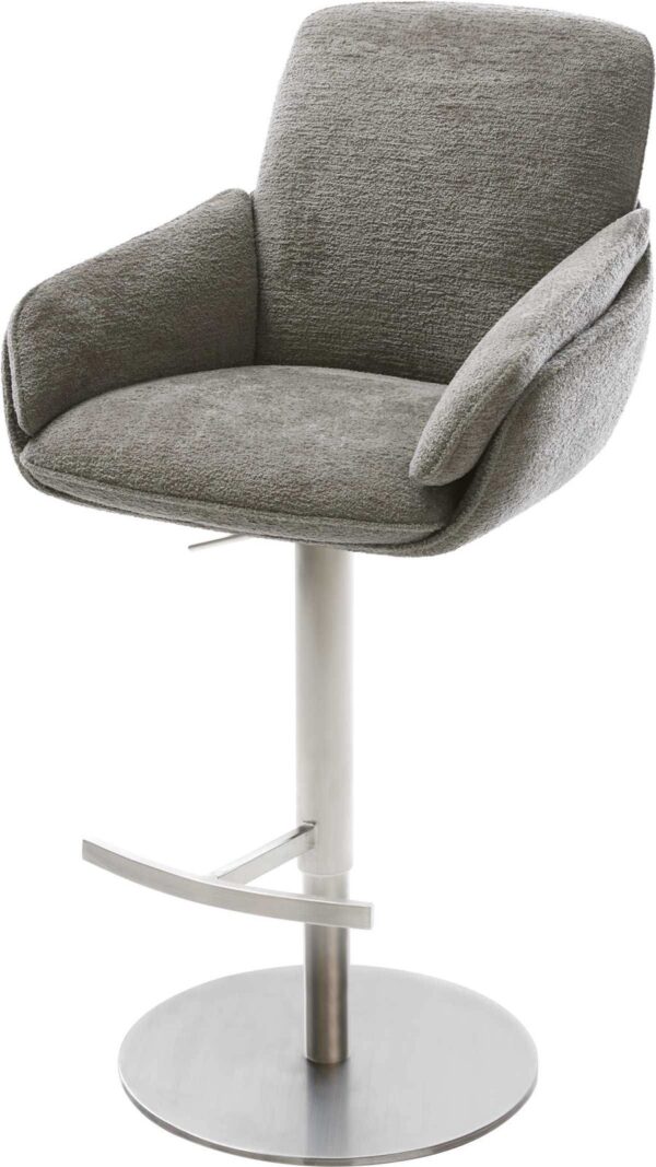 Barová stolička Nela-Flex texturovaná látka mäkký otočná podstava výškovo nastaviteľná nerezová oceľ strieborno-šedá