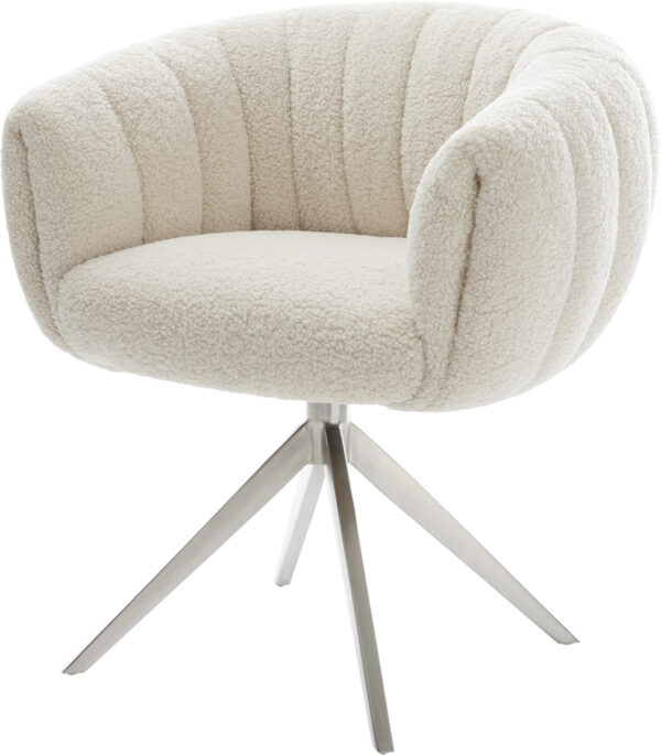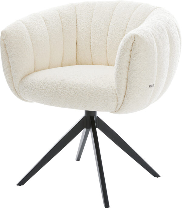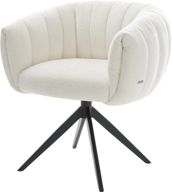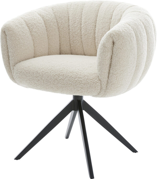 Jedálenská stolička Jada-Flex bouclé biela krížová podstava široká čierna 360° otočná hojdacia funkcia vrecková pružina