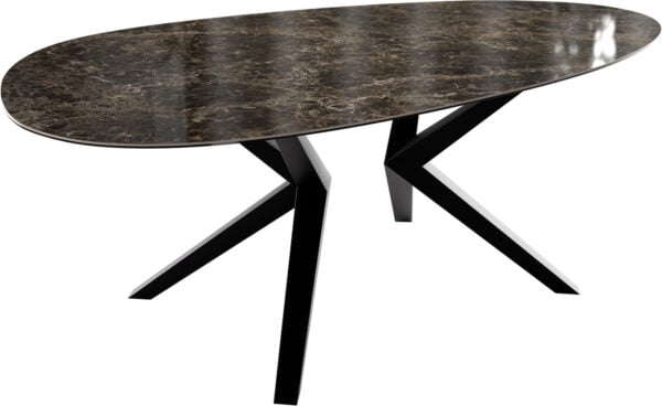 Jedálenský stôl Edge zaoblený tvar 200x100x2,5-3 dub prírodný krížová podstava obdĺžnik čierna švajčiarska hrana