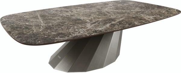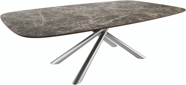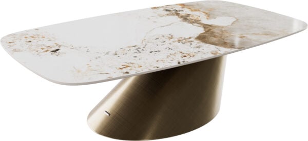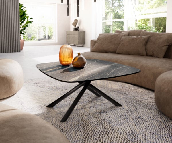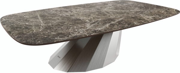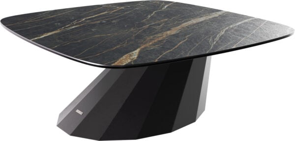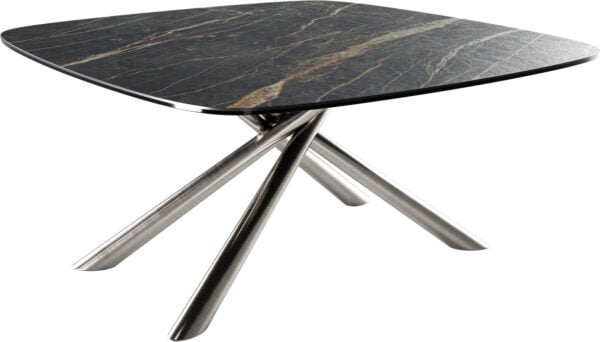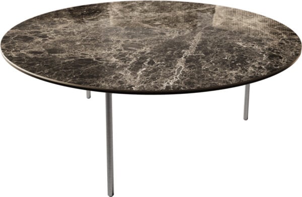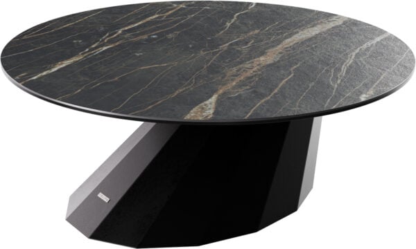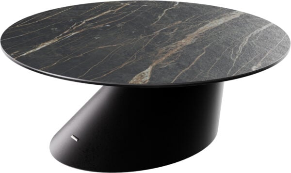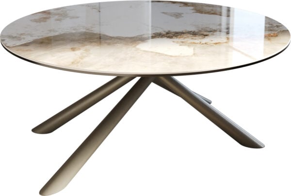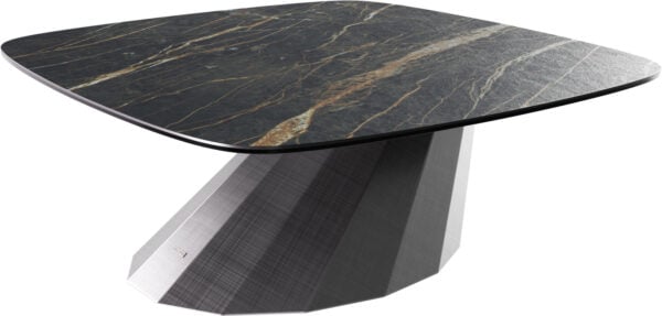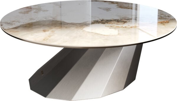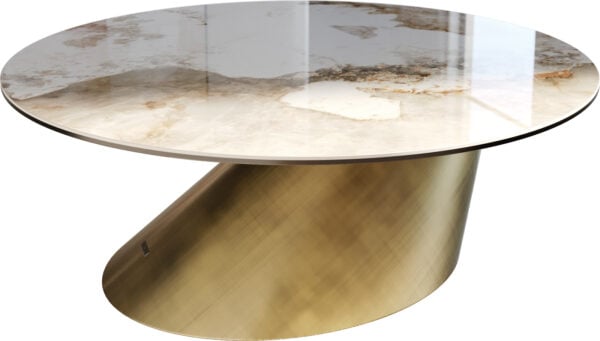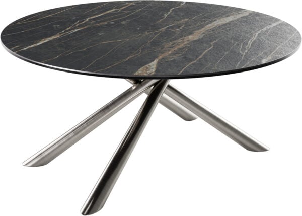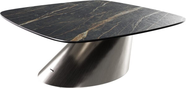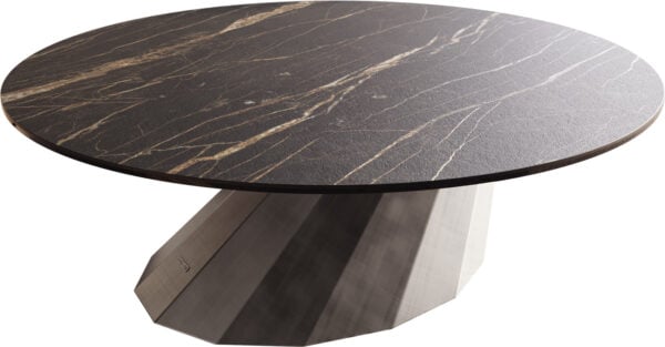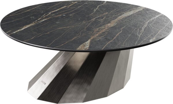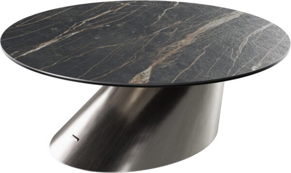 Konferenčný stolík Edge zaoblený 90x90 cm keramika Laminam® Noir Desir hnedá konis nerezová oceľ kefovaná