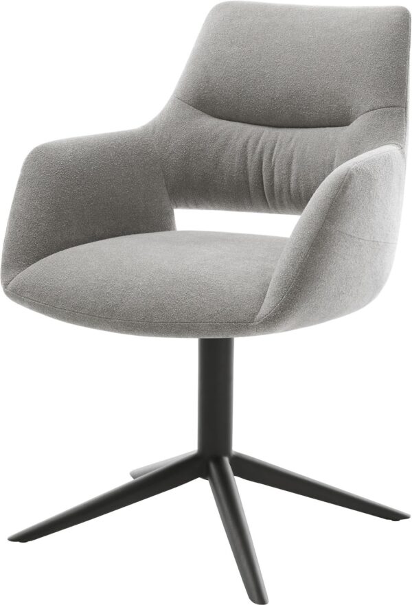 Jedálenská stolička Yago-Flex s opierkami texturovaná látka mäkký sivá krížová podstava čierna 360° otočný hojdacia funkcia vrecková pružina