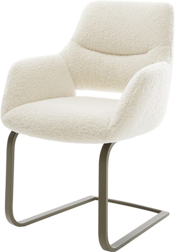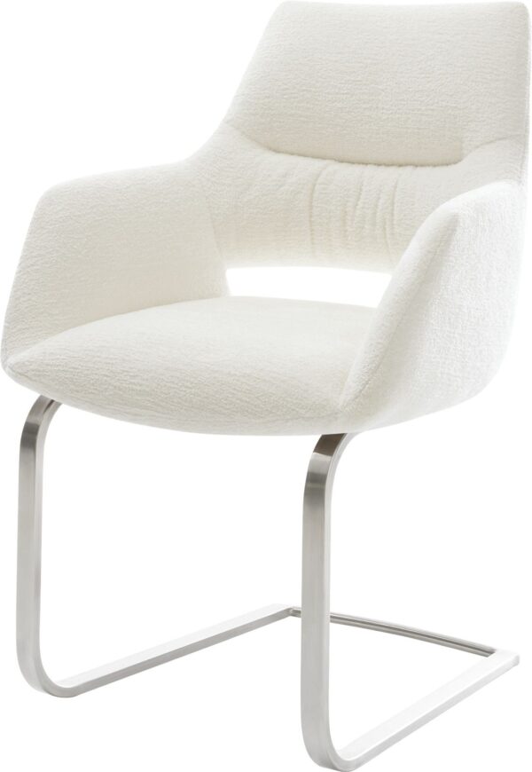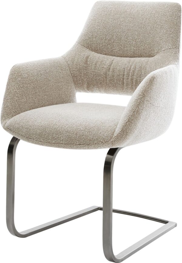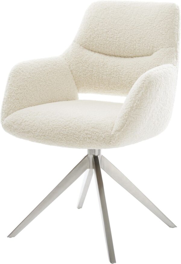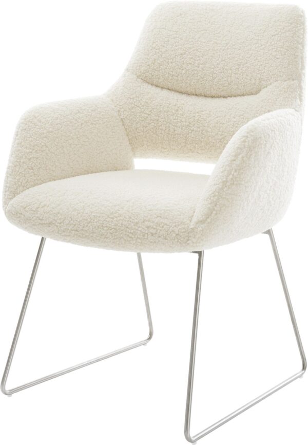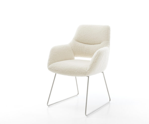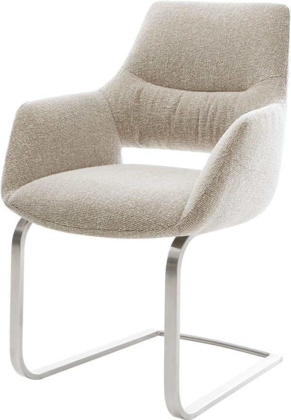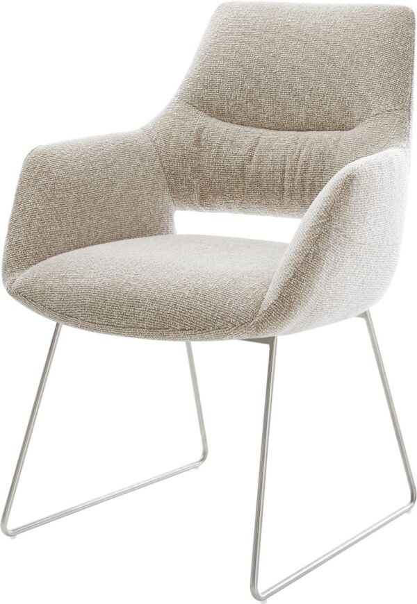 Jedálenská stolička Yago-Flex s opierkami bouclé mäkký béžová tenká podstava nerezová oceľ vrecková pružina