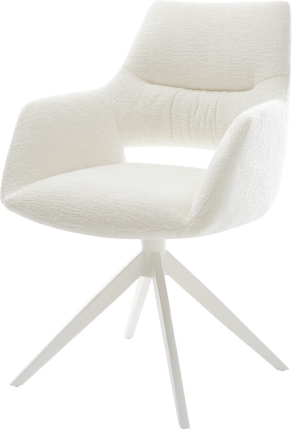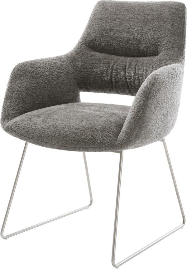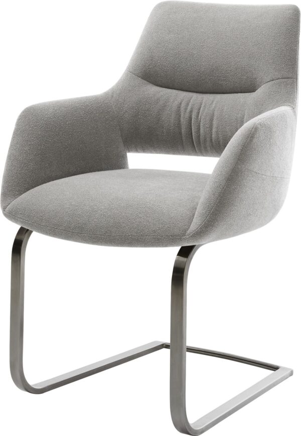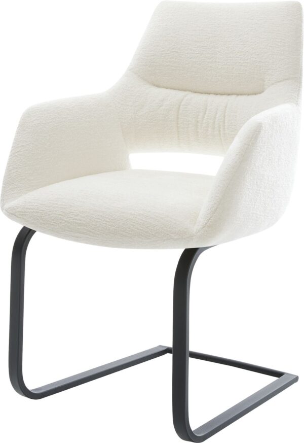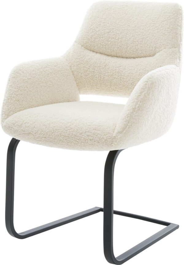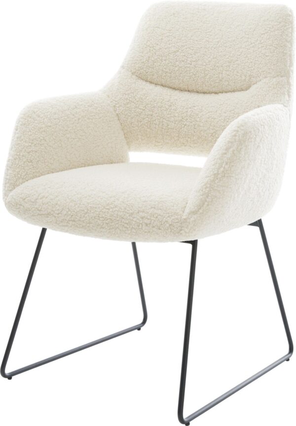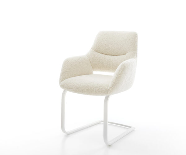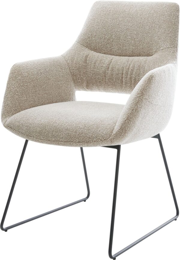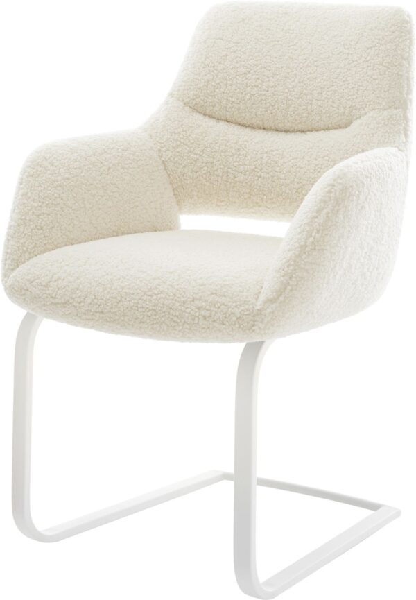 Jedálenská stolička Yago-Flex s opierkami bouclé mäkký béžová tenká podstava nerezová oceľ vrecková pružina