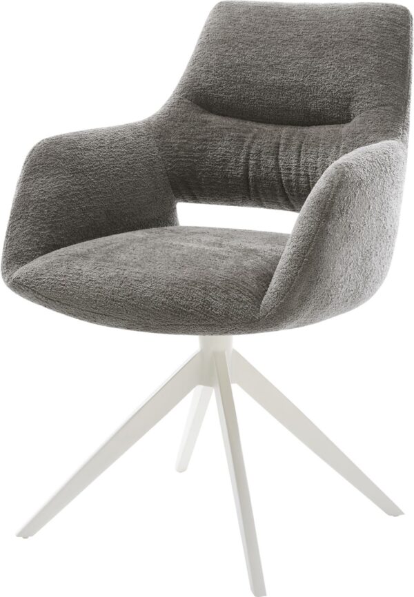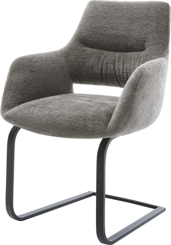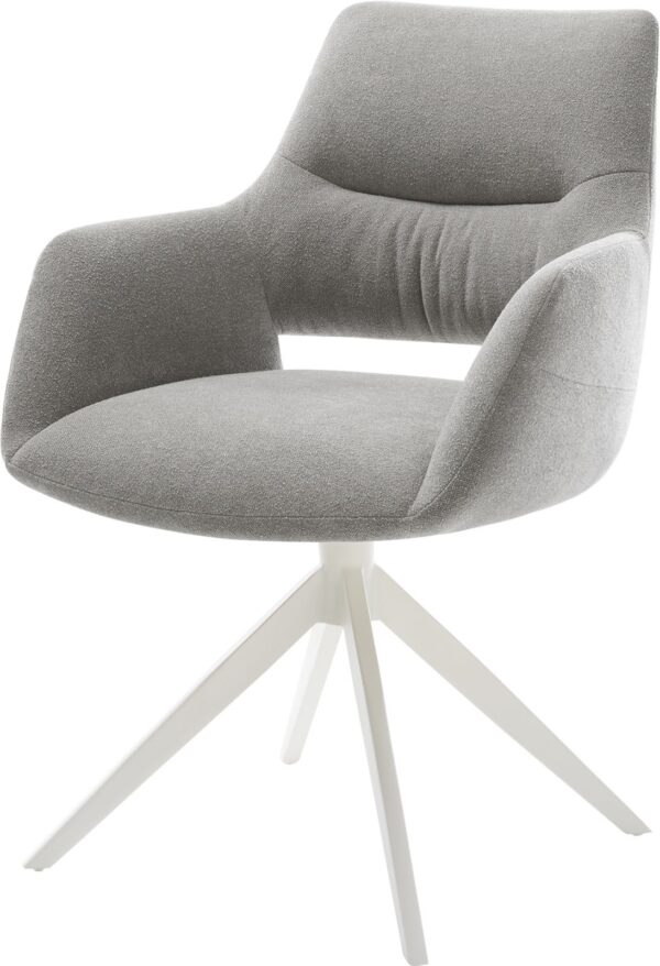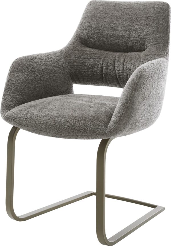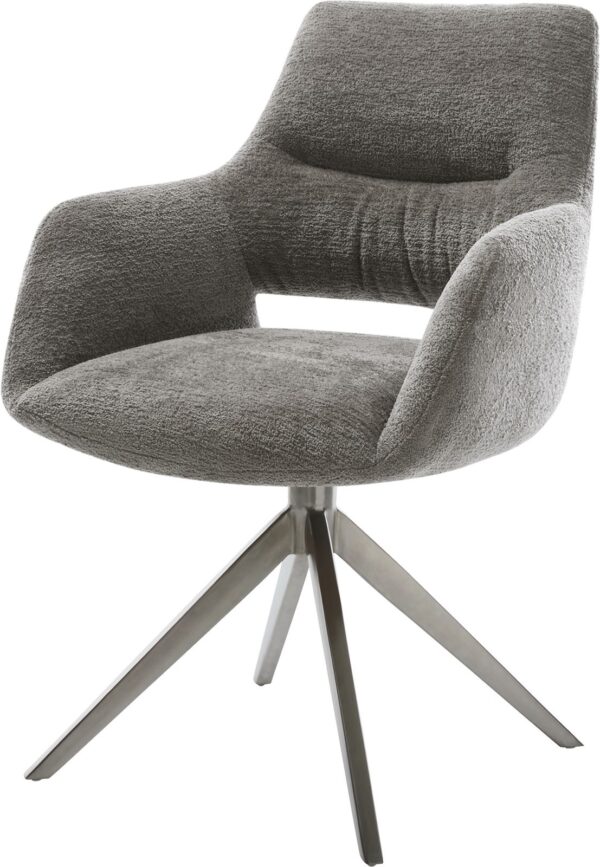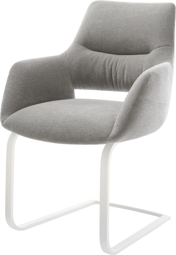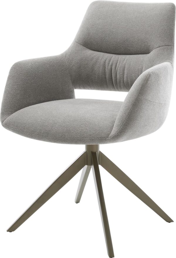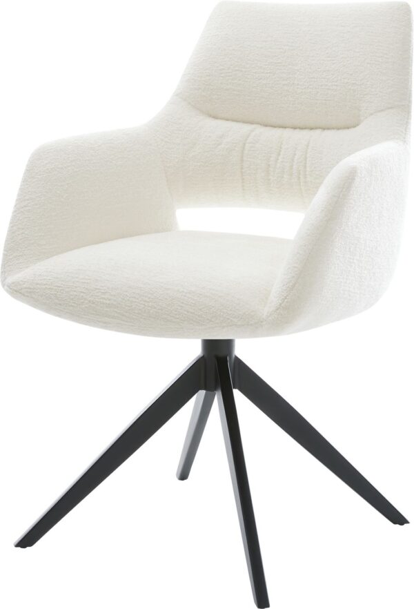 Jedálenská stolička Yago-Flex s opierkami bouclé mäkký béžová tenká podstava nerezová oceľ vrecková pružina