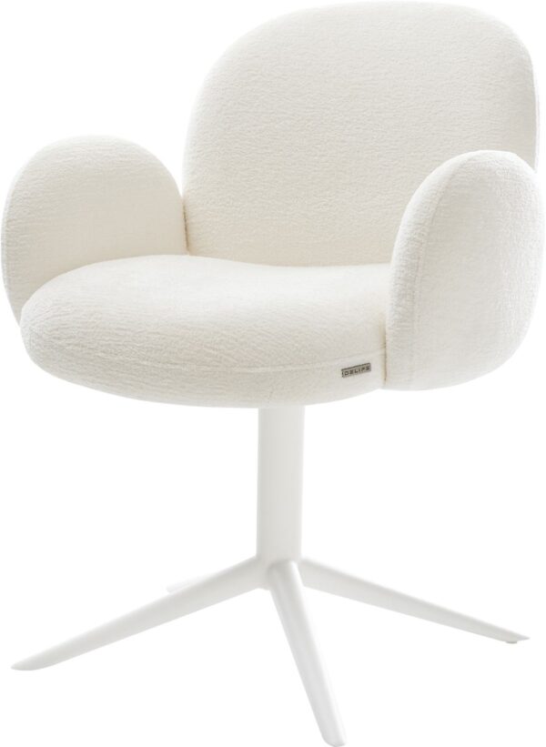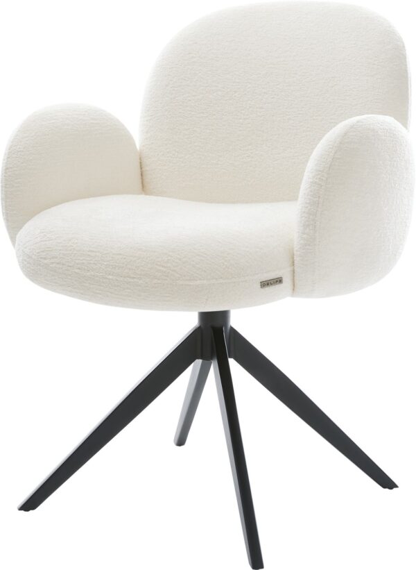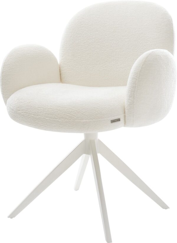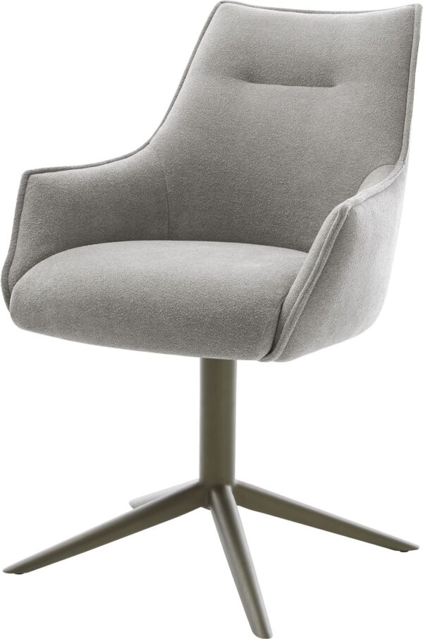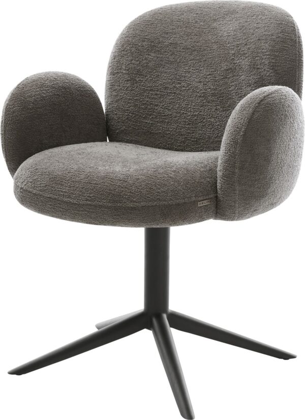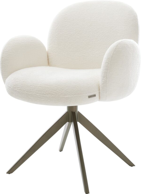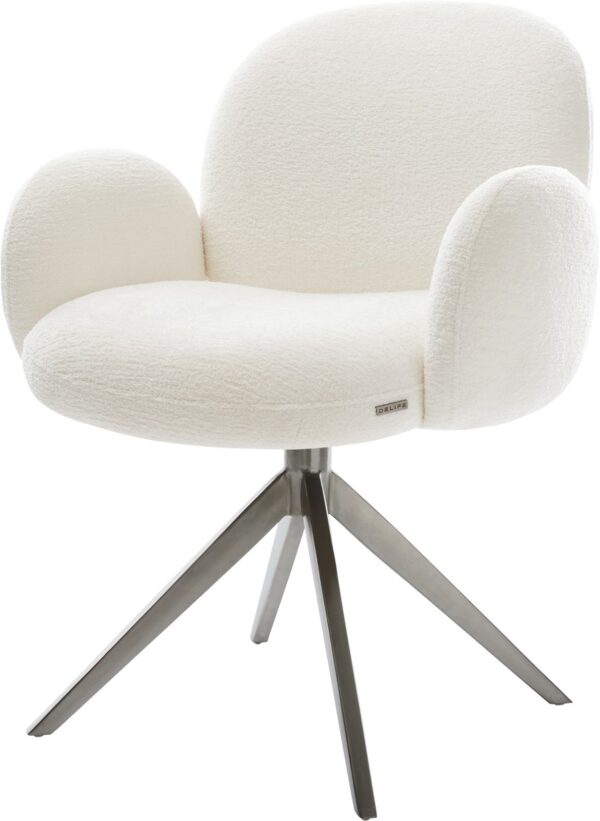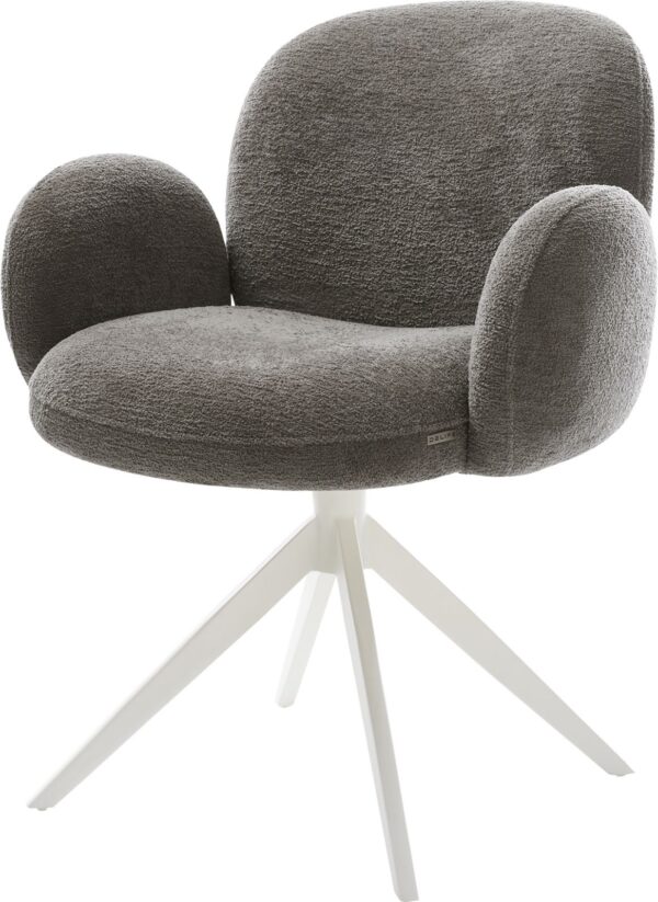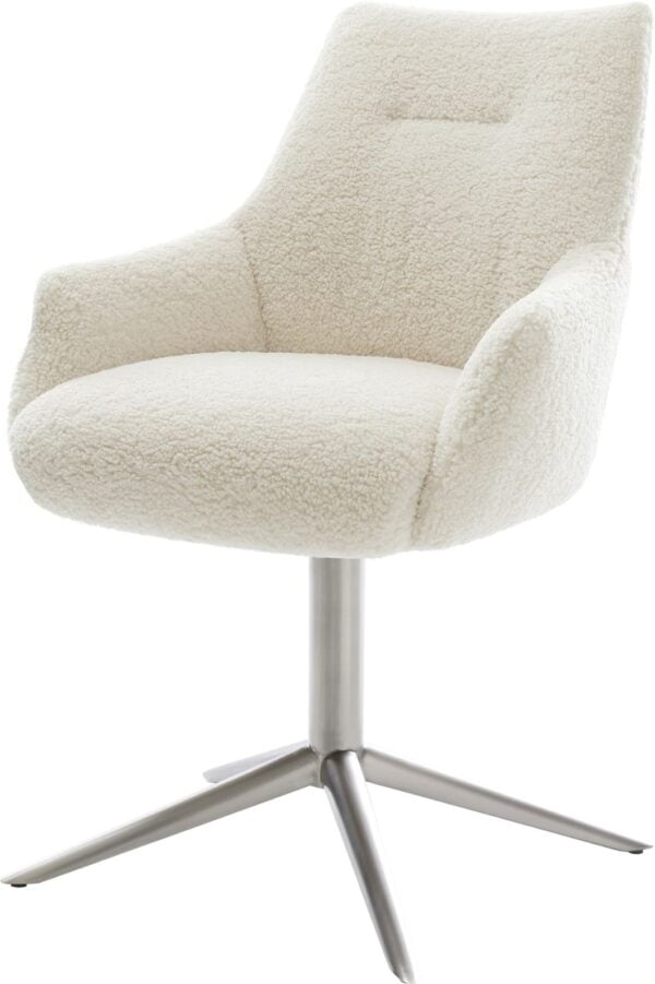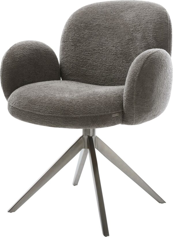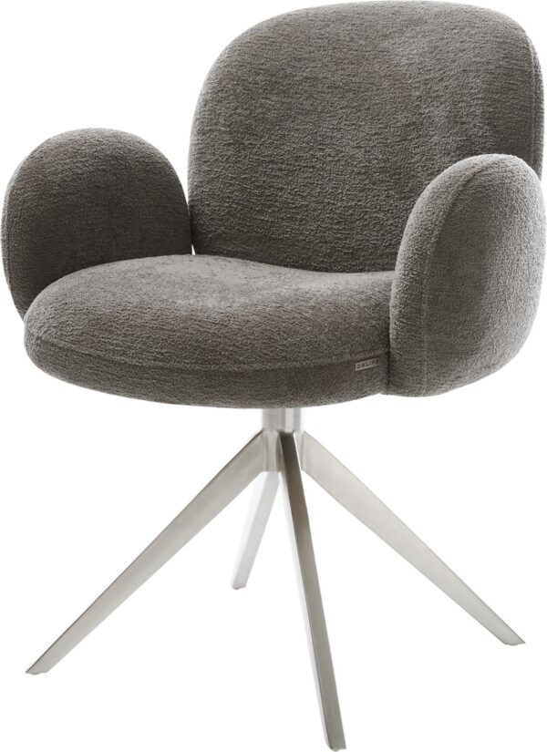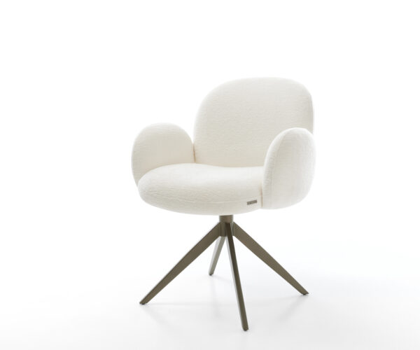 Jedálenská stolička Nube-Flex s opierkami bouclé mäkký tmavobéžová krížová podstava široká nerezová oceľ 360° otočný hojdacia funkcia vrecková pružina