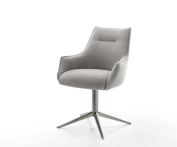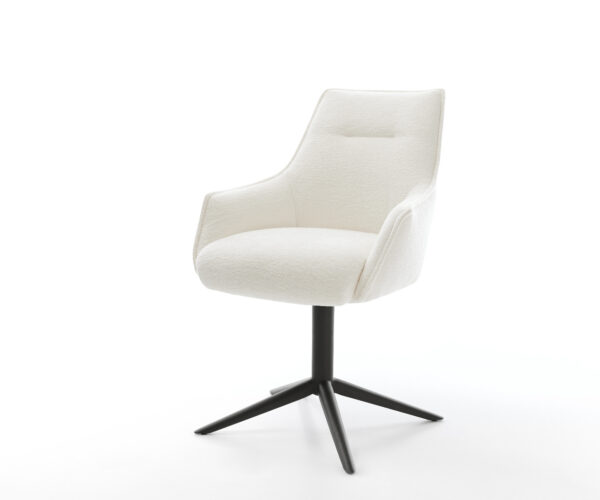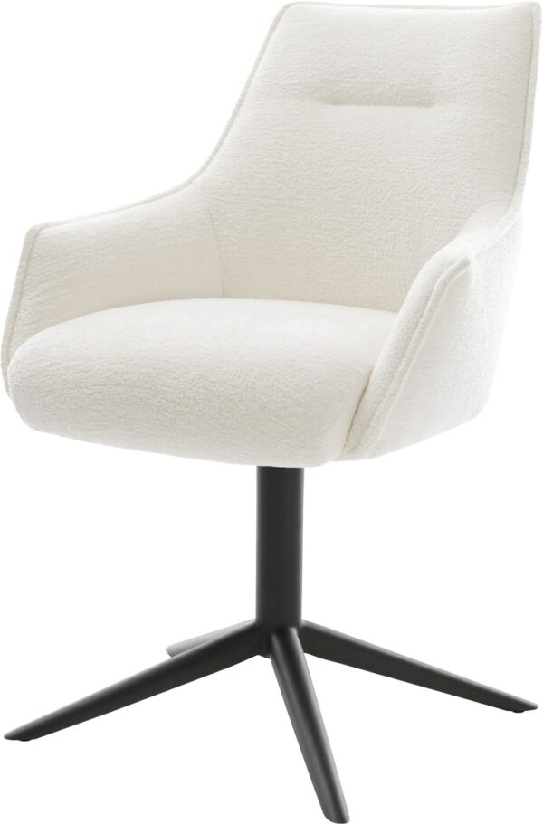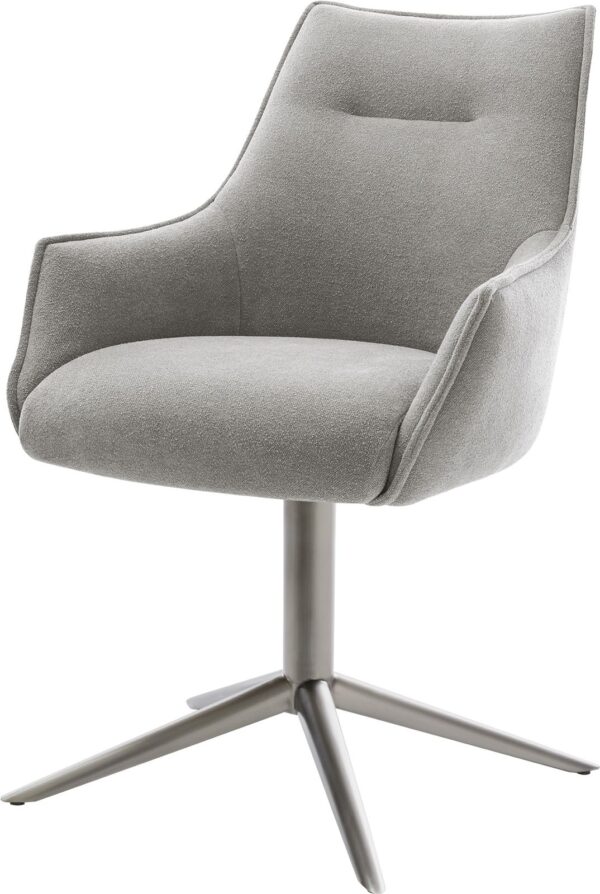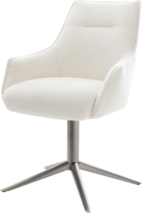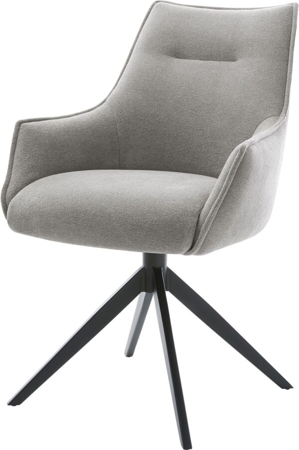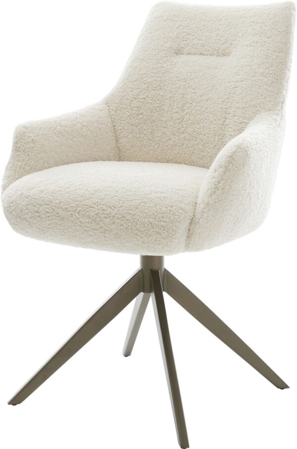 Jedálenská stolička Alja-Flex s opierkami bouclé mäkký tmavobéžová drevená podstava hranatá prírodná 180° otočný vrecková pružina
