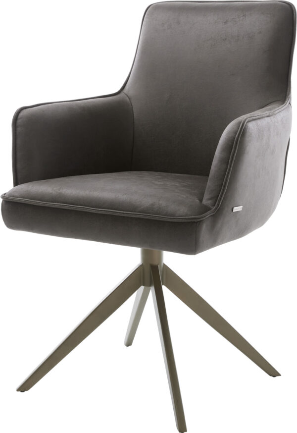 Otočná jedálenská stolička Heira-Flex s opierkami mikrovlákno antracit vintage krížová podstava široká titanový efekt 360° otočná vrecková pružina