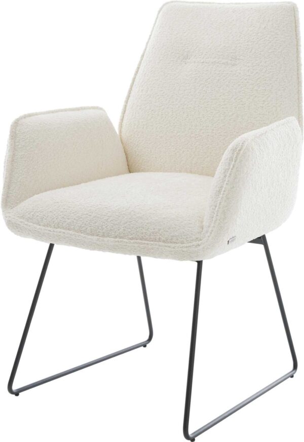 Jedálenská stolička Abelia-Flex s opierkami bouclé mäkký tmavobéžová krížová podstava široká nerezová oceľ 360° otočný hojdacia funkcia
