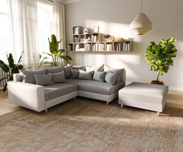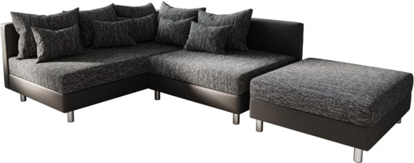 Rohová pohovka Clovis čierna modulárna taburet opierka ležadlo pravá