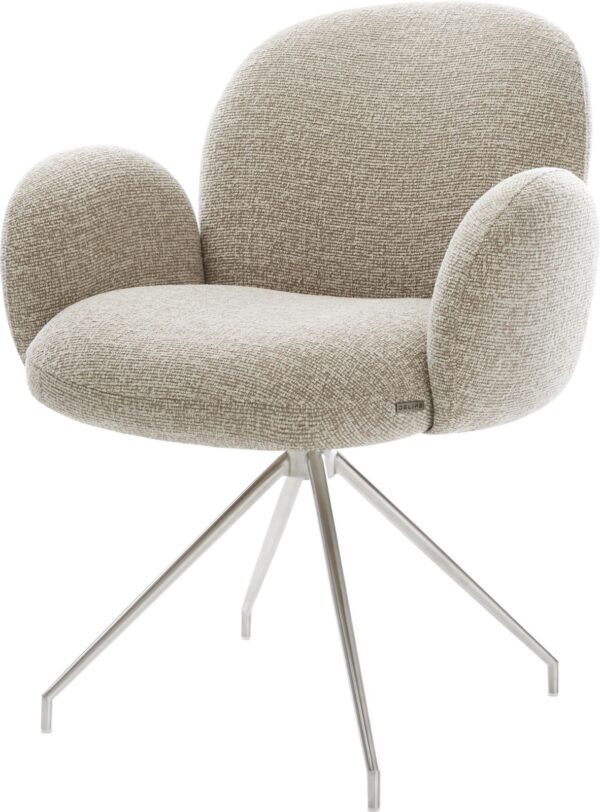 Jedálenská stolička Nube-Flex s opierkami bouclé biela krížová podstava široká titanový efekt otočná o 360° hojdacia funkcia vrecková pružina