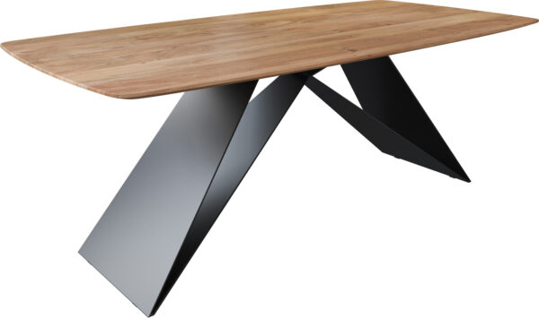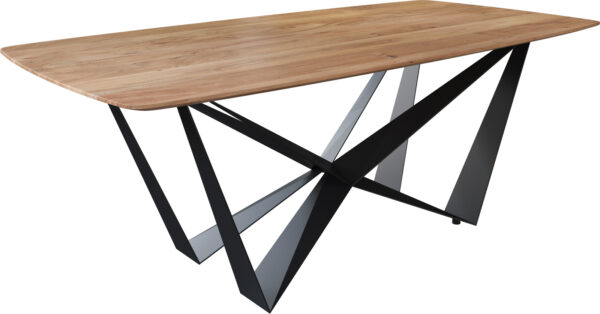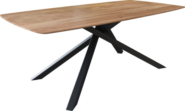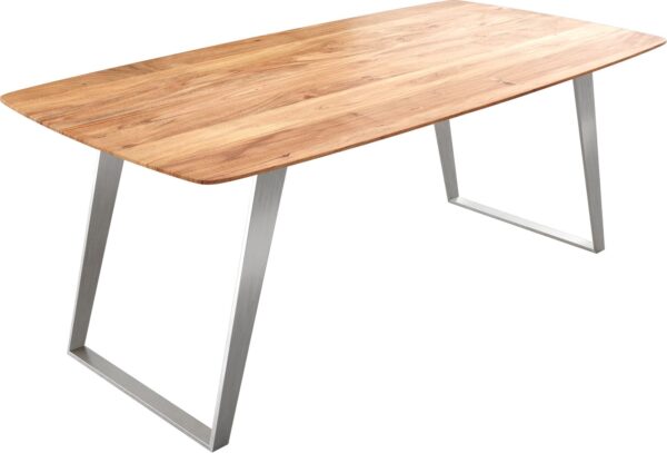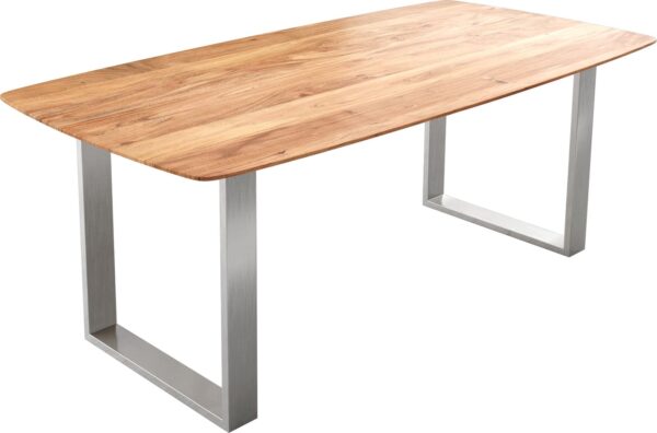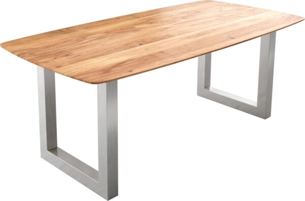 Jedálenský stôl Edge zaoblený tvar 200x100 akácia prírodná nerezová oceľ skosený švajčiarska hrana