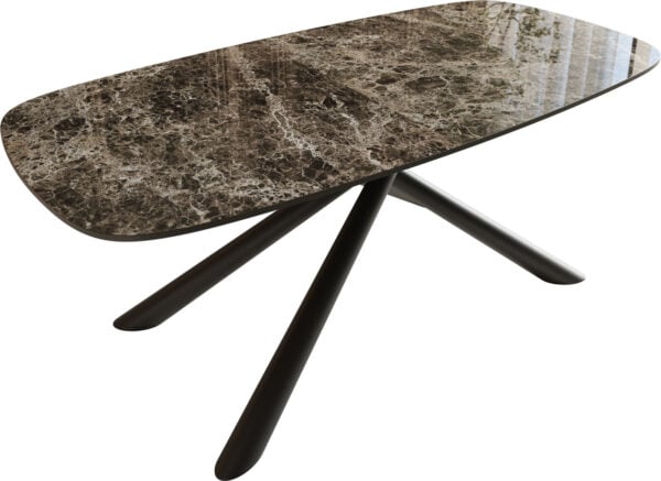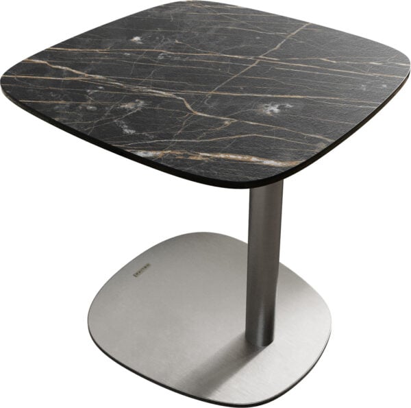 Konferenčný stolík Edge zaoblený 50x50 cm keramika Laminam® Noir Desir hnedá Eleny nerezová oceľ kefovaná