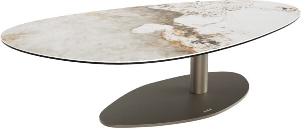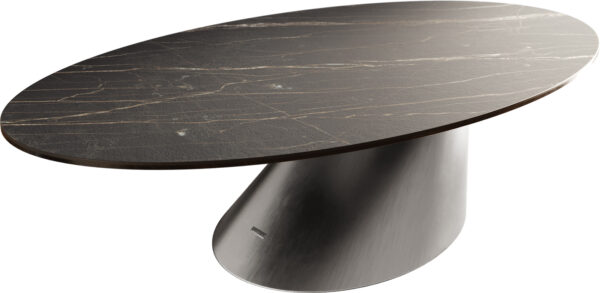 Konferenčný stolík Edge oválny 140x80 cm keramika Laminam® Noir Desir hnedá Conis nerezová oceľ kefovaná