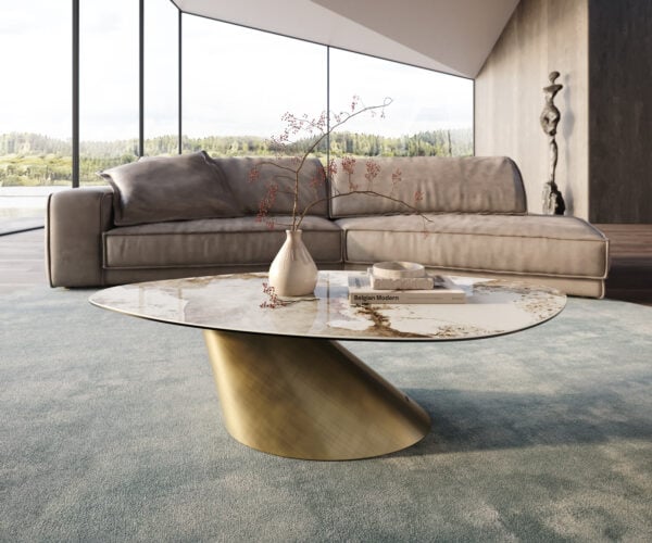 Konferenčný stolík Edge organický 140x76 cm keramika Minas Melange Sarity kov efektový povrch titán