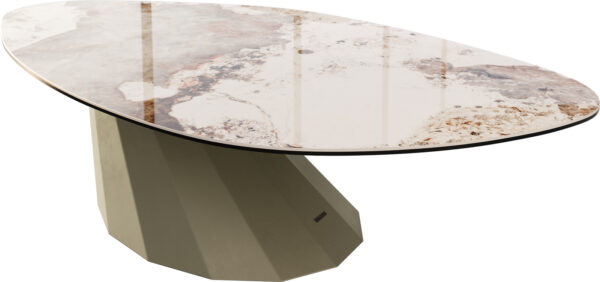 Konferenčný stolík Edge organický 140×76 cm keramika Minas melange Parabi kov titánová farba efekt