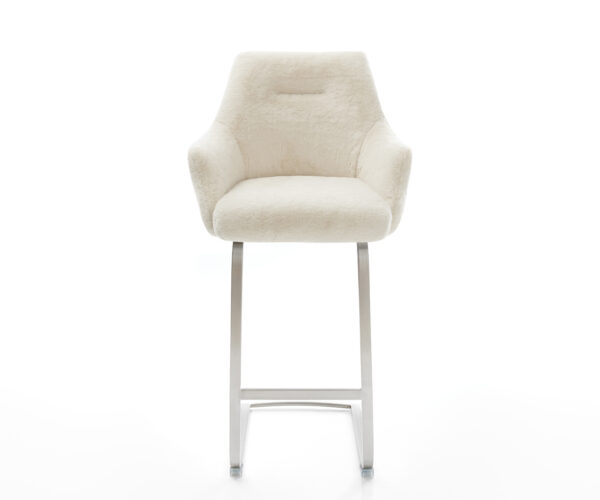 Barová stolička Alja-Flex plyšový manšester krémovo biela konzolová podstava plochá nerezová oceľ strieborná vrecková pružina