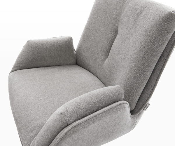 Vysokokvalitný poťah zo štruktúrovanej tkaniny v soft sivej farbe presvedčí svojou jemnou textúrou a príjemne mäkkým dotykom. Jemné farebné prevedenie zabezpečuje štýlový vzhľad v každej jedálni – či už ako samostatný kus alebo v kombinácii s ďalšími stoličkami zo série.