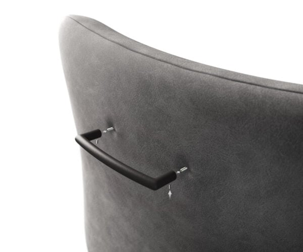Vyrobený z práškovo lakovaného kovu je tento úchyt barovej stoličky nielen kvalitný a odolný, ale aj kompatibilný so všetkými sedacími miskami našich barových stoličiek FLEX. Pri prvom zložení stoličky sa úchyt pripevňuje na dve miesta označené písmenom „A“ na zadnej strane sedacej misy.