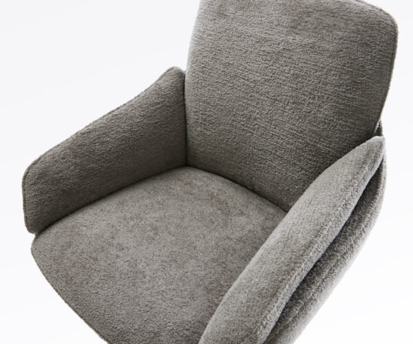 Táto stolička zaujme kvalitným poťahom z bouclé v teplom tmavobéžovom odtieni. Jemná štruktúra a pokojná farba dodávajú nábytku modernú a útulnú charizmu – ideálne do jedálne alebo čitateľského kútika.