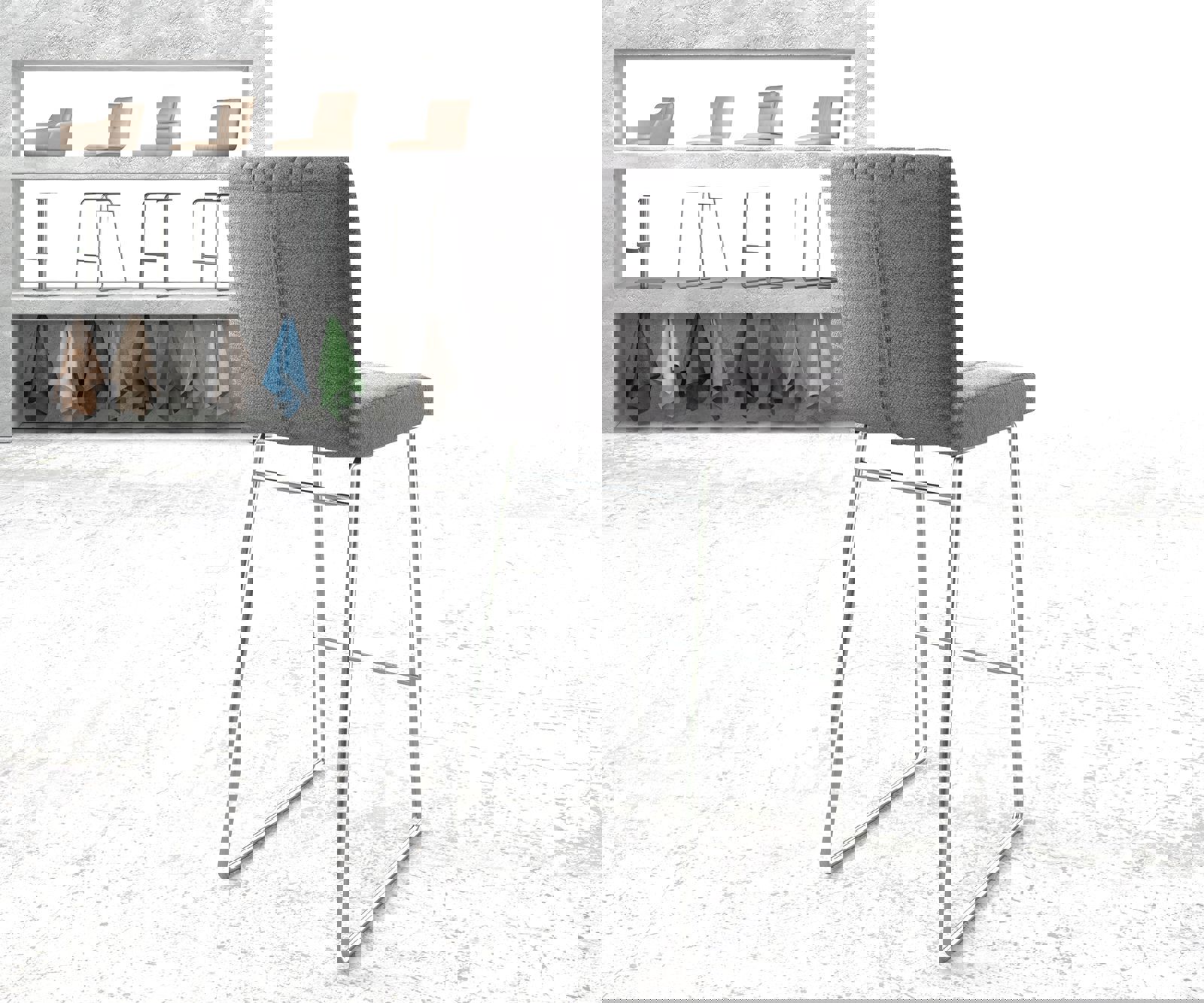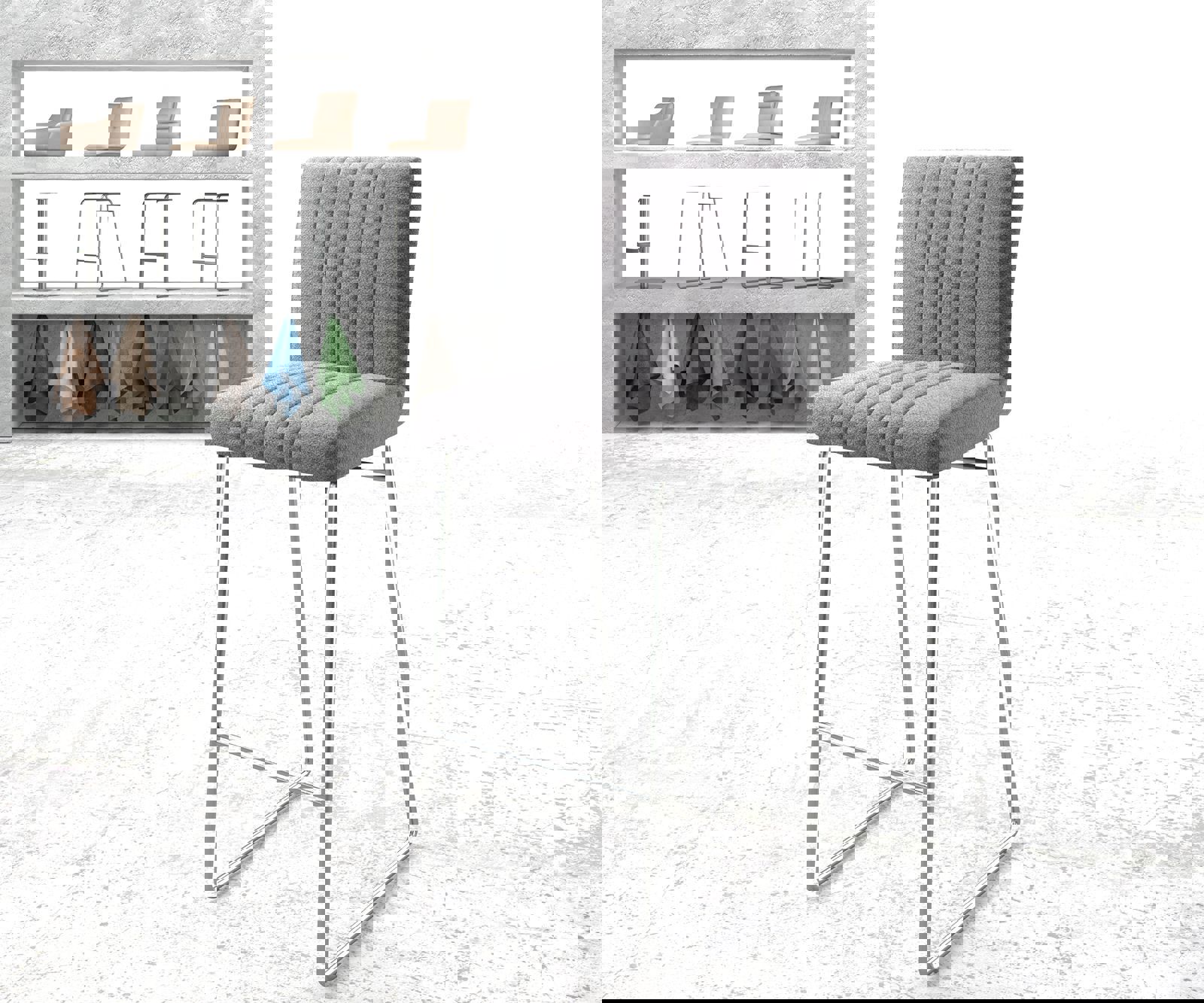 Barová stolička Luiga-Flex texturovaná látka svetlosivá tenká podstava nerezová oceľ