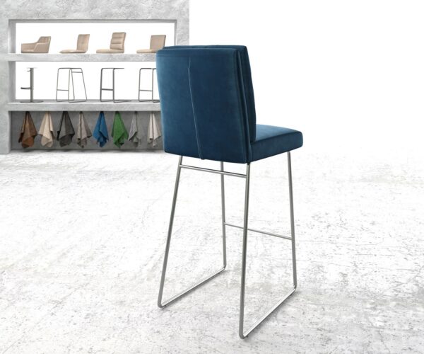 Sedacia škrupina Pela presvedčivo dokazuje, že barové stoličky nemusia byť len elegantné na pohľad, ale môžu byť aj mimoriadne pohodlné. Vysokokvalitné čalúnenie s pružinovým jadrom a čalúnená operadlová časť v elegantnom vzhľade vankúša zabezpečujú neuveriteľne luxusný komfort sedenia, ktorý vás bude vždy znova nadchýnať. S použitím zamatovej látky v tomto elegantnom modrom odtieni ste v trende! Zamat totiž očarí svojou mäkkosťou a obzvlášť elegantným, jemne lesklým vzhľadom. Vďaka použitiu moderných materiálov na výrobu zamatu je pôvodne veľmi citlivá látka dnes oveľa odolnejšia a vhodná ako poťahový materiál na stoličky.