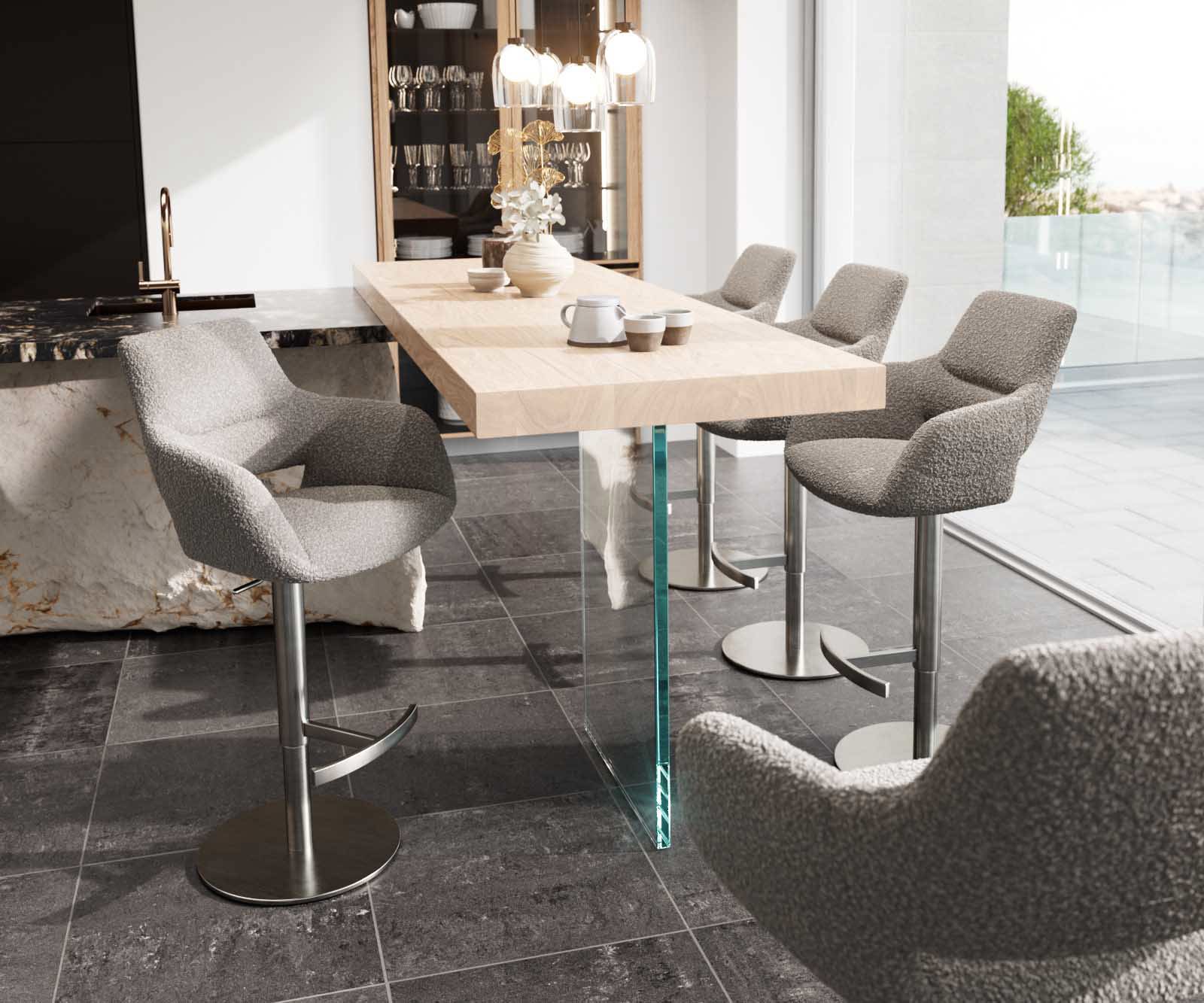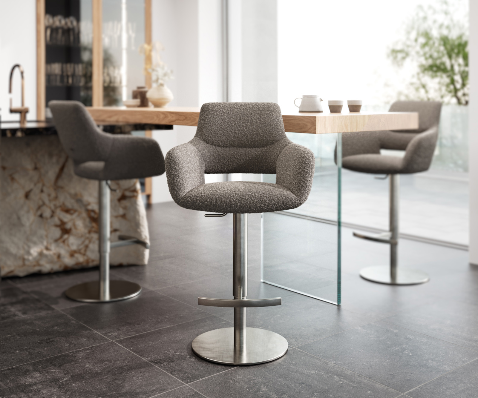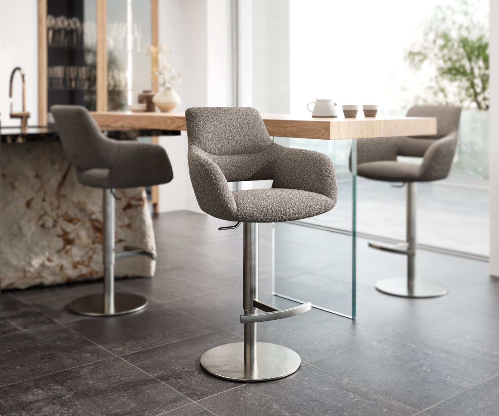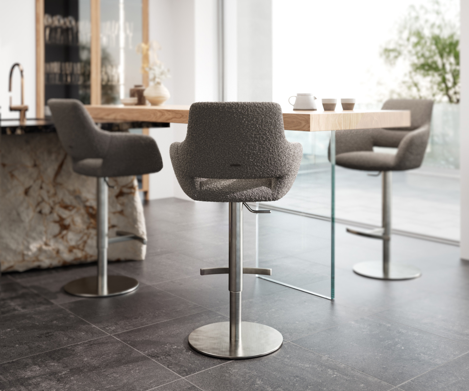 Barová stolička Yago-Flex bouclé striebornošedá otočná výškovo nastaviteľná nerezová oceľ otočný vrecková pružina