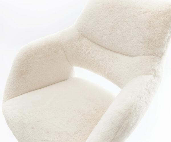 Luxusný plyšový poťah v jemnej krémovo-bielej farbe dodáva stoličke obzvlášť elegantnú charizmu. Mäkký povrch poskytuje najvyšší komfort sedenia – ideálne pre moderné jedálne a obytné priestory s kvalitným zariadením.