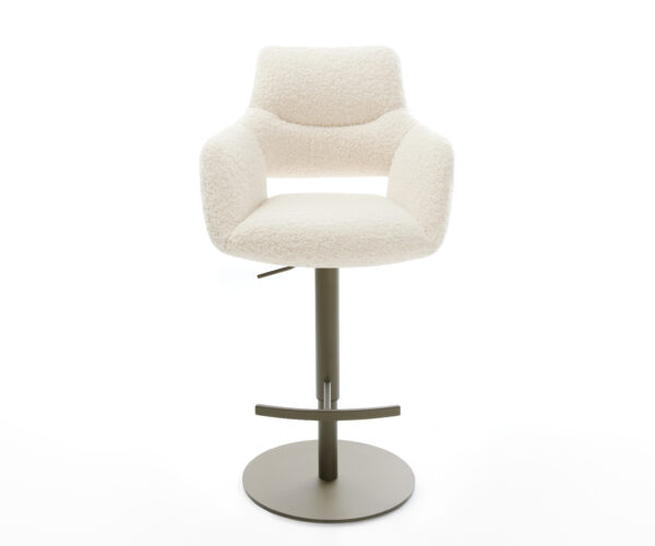 Barová stolička Yago-Flex teddy látka béžová otočná podstava výškovo nastaviteľná kov titánová vrecková pružina