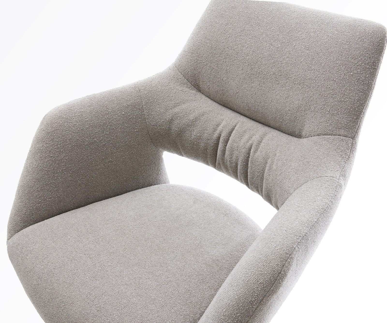 Jedálenská stolička Yago-Flex zaujme svojím jedinečným dizajnom sedacej mušle a prepracovanou opierkou chrbta. Jemne sa zužujúce opierky rúk a elegantné ozdobné prešívanie harmonicky dotvárajú vzhľad a robia z Yago-Flex skutočný pútač pozornosti vo vašej jedálni. Čalúnenie z kvalitnej peny s integrovanou vreckovou pružinou prináša čistý pôžitok zo sedenia.