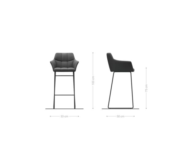Pre tých, ktorí hľadajú vzrušujúco odlišný dizajn barovej stoličky, bude Yulo nadšením. Výrazne tvarovaná sedacia mušľa s plynule von vyhnutými opierkami na ruky a prepracované prešívanie po celej ploche sedadla robia z Yulo dizajnový skvost, ktorý každý deň dokáže zaujať nanovo.