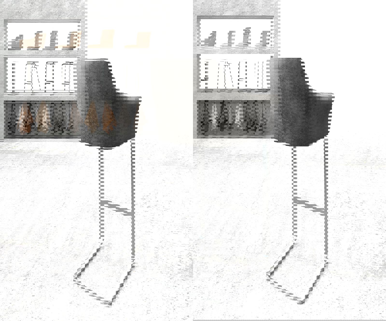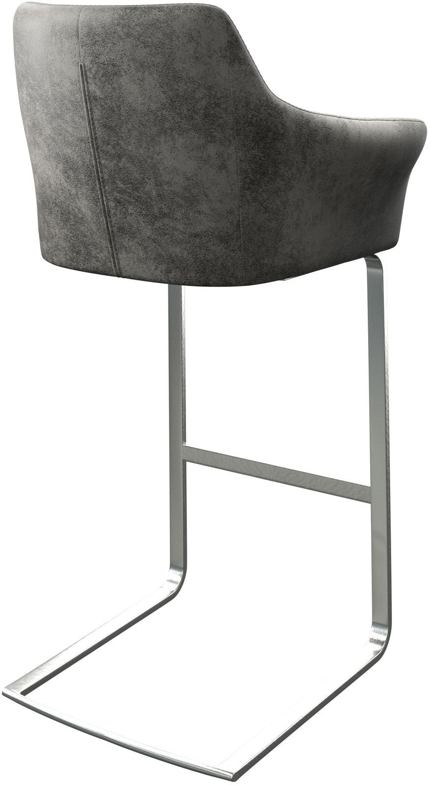 Barová stolička má výnimočnú podstavu v elegantnom tvare závesnej jedálenskej stoličky z moderného plochého oceľového profilu. Jej ľahká hojdacia funkcia robí sedenie mimoriadne šetrným k chrbtici. Pre dodatočný komfort sedenia slúži stabilná podnožka.