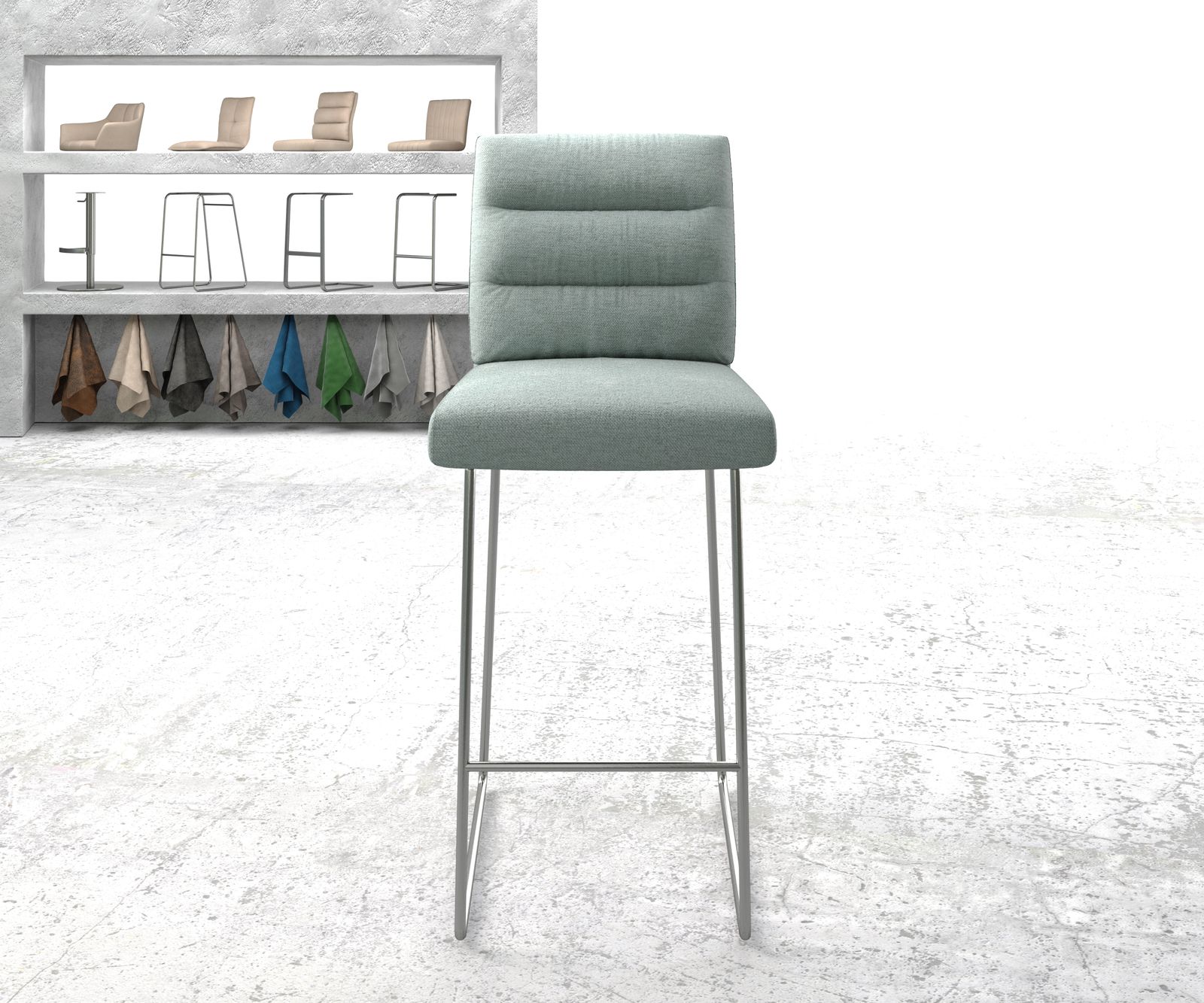 Sedacia mušľa Pela presvedčivo dokazuje, že barové stoličky nemusia byť len elegantné na pohľad, ale môžu byť aj mimoriadne pohodlné. Vysokokvalitné čalúnenie s pružinovým jadrom a čalúnená operadlová časť v elegantnom vzhľade vankúša zabezpečujú neuveriteľne luxusný komfort sedenia, ktorý vás bude vždy znova nadchýnať. Jemne tkaná plochá tkanina zaujme svojou príjemnou hmatovou textúrou a elegantným, jemným mentolovým odtieňom, ktorý sa krásne hodí do mnohých rôznych štýlov zariadenia.