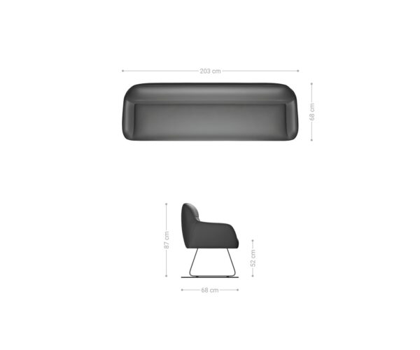 - Rozmery cca: Š203 × H69 × V87 cm