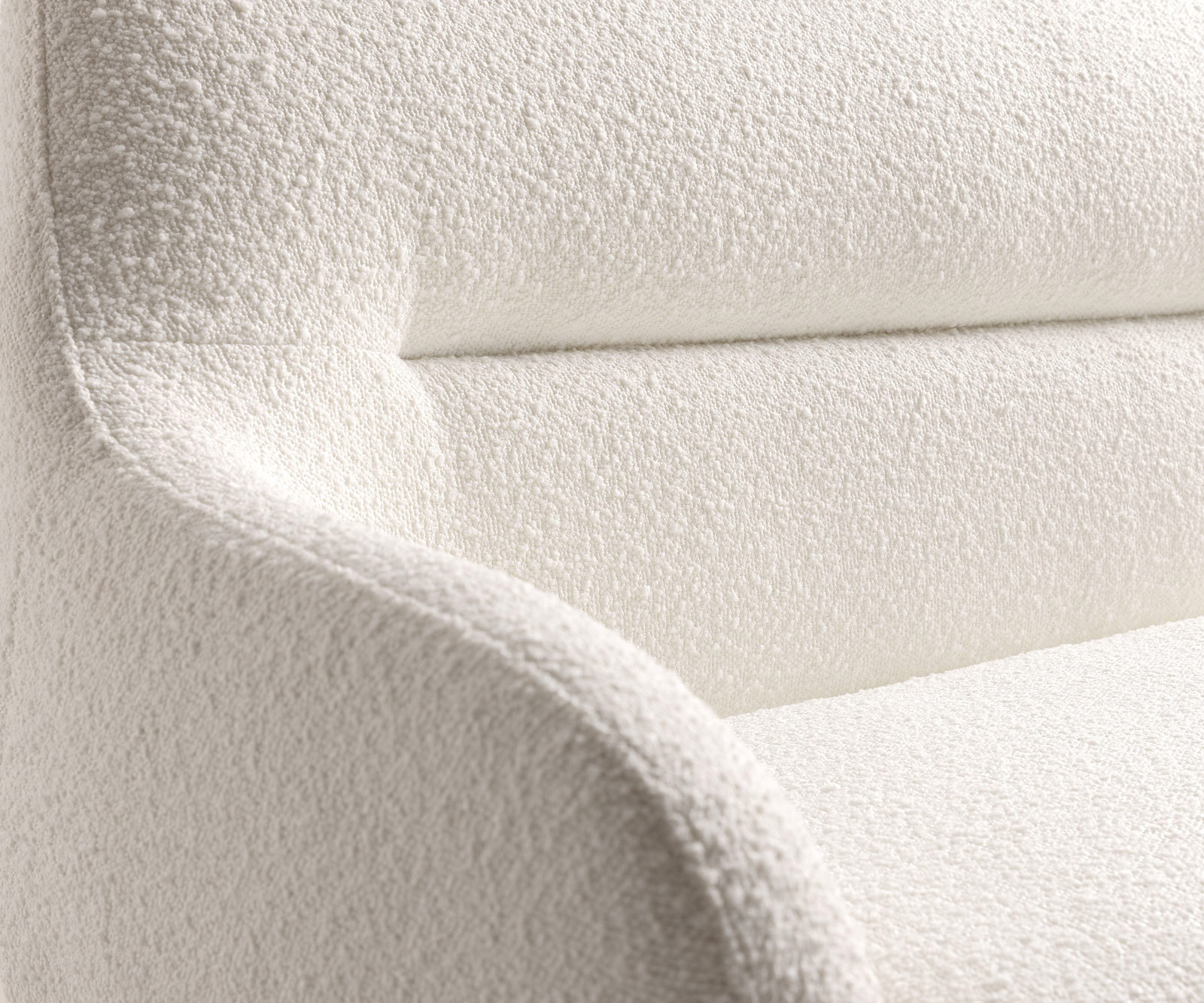 So svojou svetlou krémovo bielou farbou a príjemnou štruktúrou bouclé prináša táto látka do obytného priestoru ľahkosť a eleganciu. Kvalitné spracovanie a mäkký dotyk z nej robia štýlovú voľbu pre pohodlný nábytok na každodenné používanie.