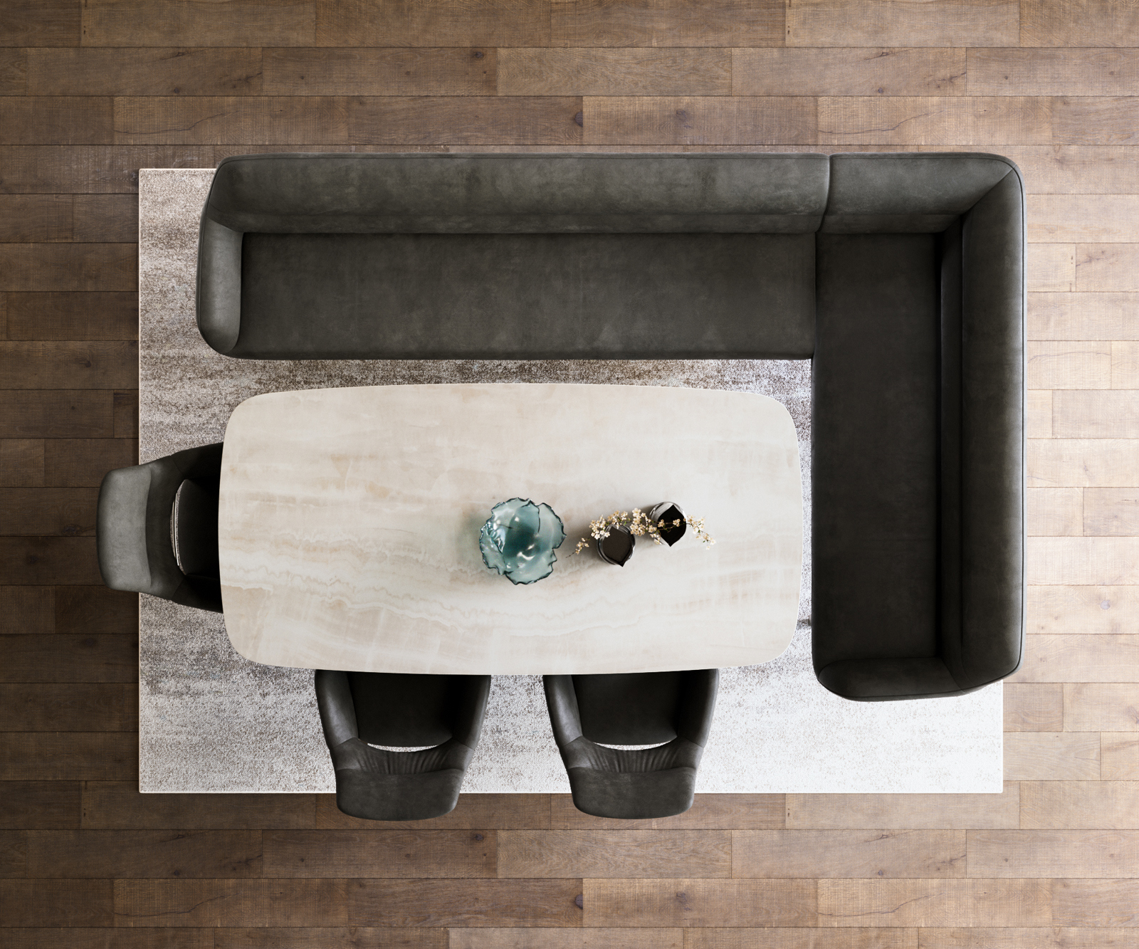 Poťah z mikrovlákna v antracitovej vintage farbe dodáva lavici výrazný, moderný nádych. Tmavý odtieň pôsobí elegantne a pokojne, jemná vintage štruktúra prináša hĺbku a eleganciu. Kvalitné mikrovlákno je odolné, nenáročné na údržbu a príjemne mäkké – pre štýlový a trvácny pocit pohodlia pri sedení.