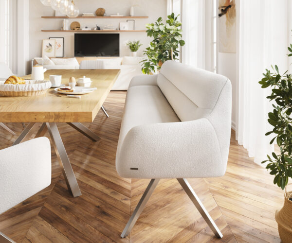 Jedálenská lavica Taya Bouclé krémovo-biela – rohový systém od DELIFE