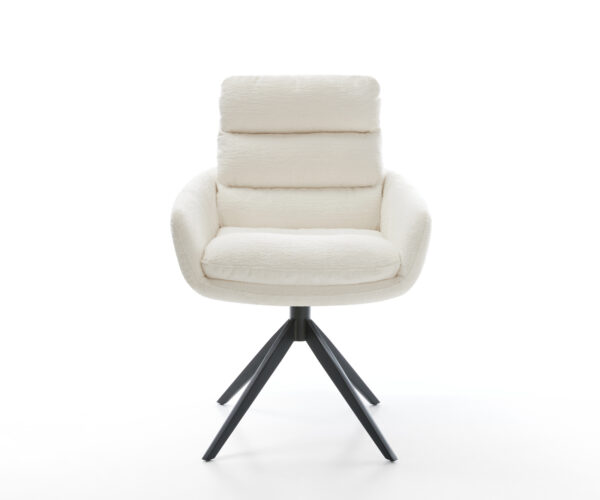Jedálenská stolička Abelia-Flex s opierkami bouclé mäkká béžová krížová podstava široká čierna 360° otočná hojdacia funkcia