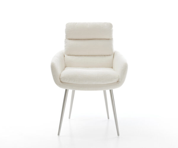 Abelia pôsobí so svojimi integrovanými a príjemne čalúnenými opierkami rúk obzvlášť elegantne a majestátne. Široká sedacia plocha s voľným vankúšovým vzhľadom robí stoličku nielen mimoriadne pohodlnou, ale aj štýlovým pútačom pozornosti vo vašej jedálni.